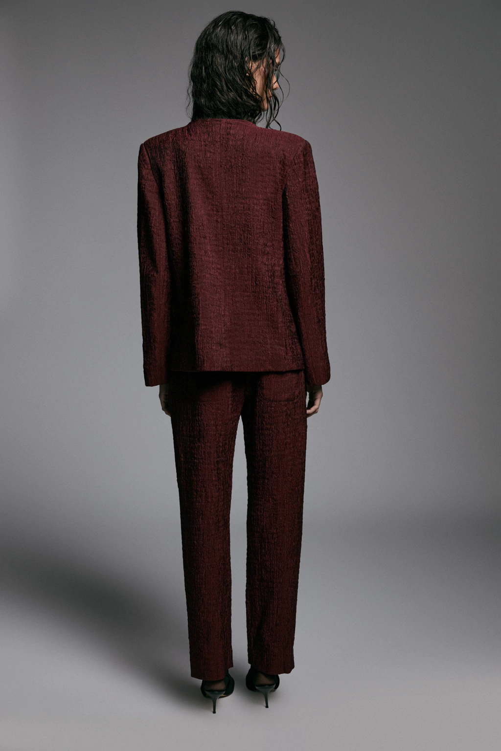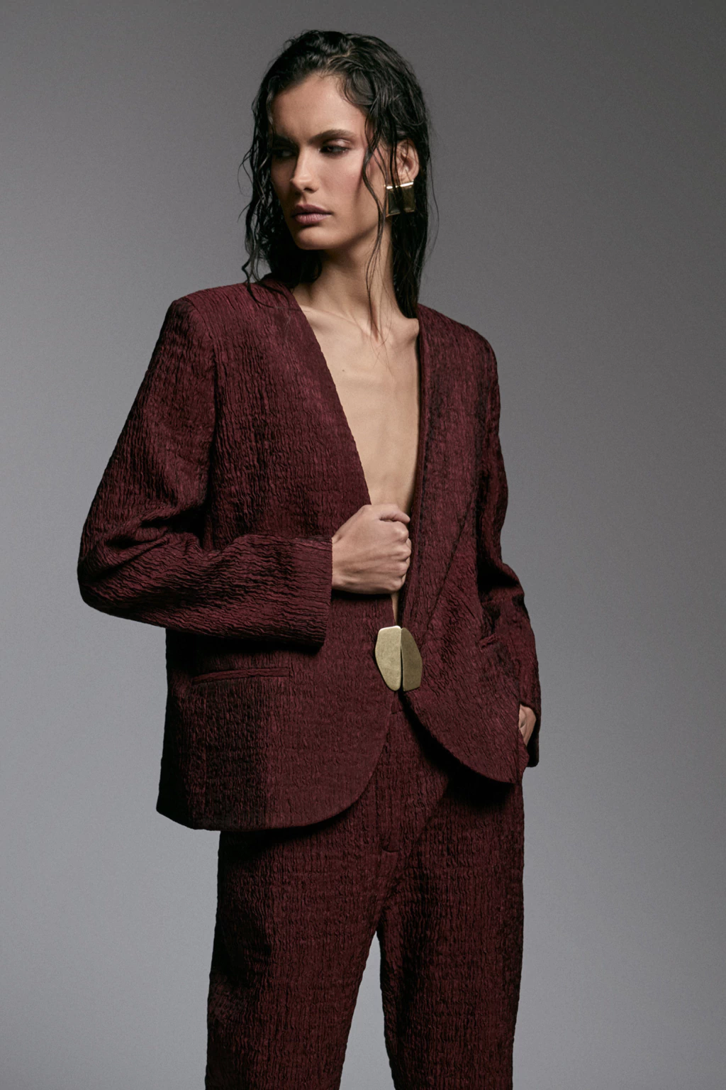 Com linhas limpas e estrutura impecável, o Blazer Fortini propõe uma nova leitura da alfaiataria contemporânea. Sem gola nem lapelas, aposta em uma silhueta minimalista, valorizada por pences frontais, bolso com vivo e recortes estratégicos nas costas e mangas. O fechamento com aviamento de encaixe preserva o visual polido, enquanto o forro completo e a entretela garantem caimento técnico e sofisticação absoluta.