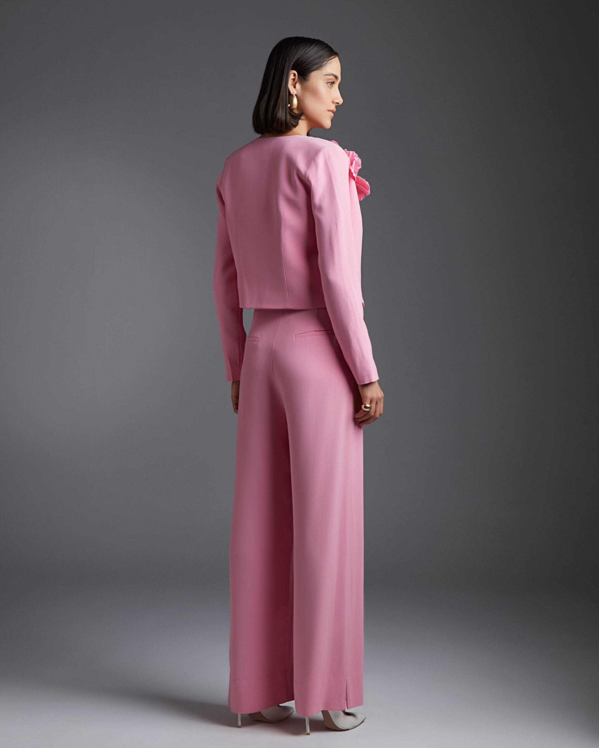 O blazer Mia é confeccionado em crepe de alfaiataria, tecido nobre com matérias primas de alta qualidade, produzidas com baixo impacto ambiental. A peça apresenta modelagem reta na altura da cintura com ombreiras, proporcionando um visual elegante e moderno. Possui gola redonda, mangas compridas, forro embutido e acabamento pespontado. A peça contém um broche para ousar na criatividade e compor o look com diversas possibilidades.