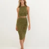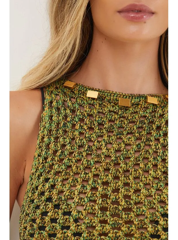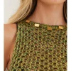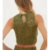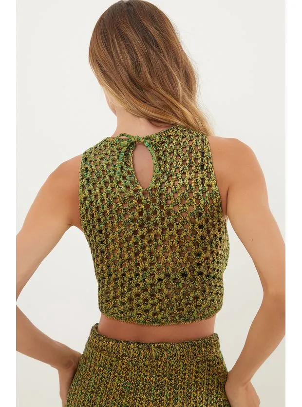 A blusa de tricot verde Aria é uma peça versátil que pode ser usada com shorts, calças ou saias.
