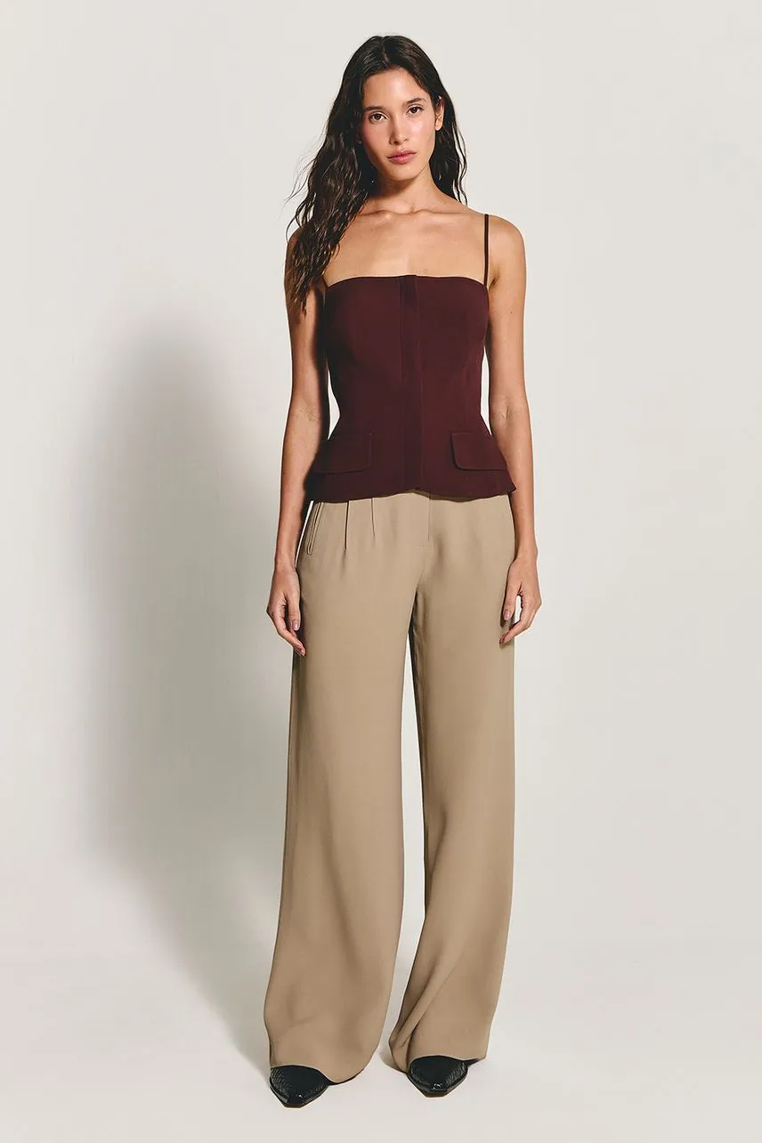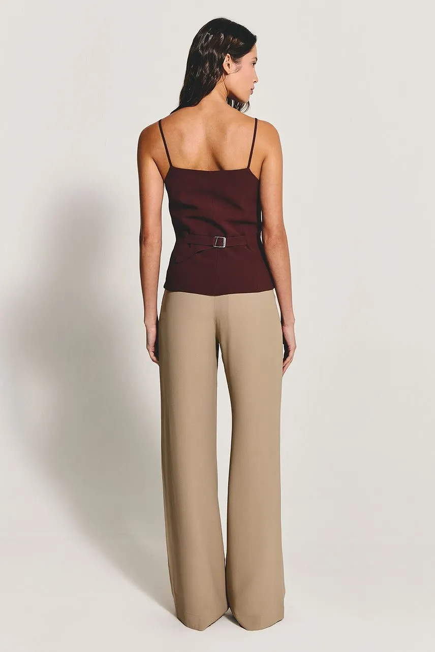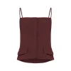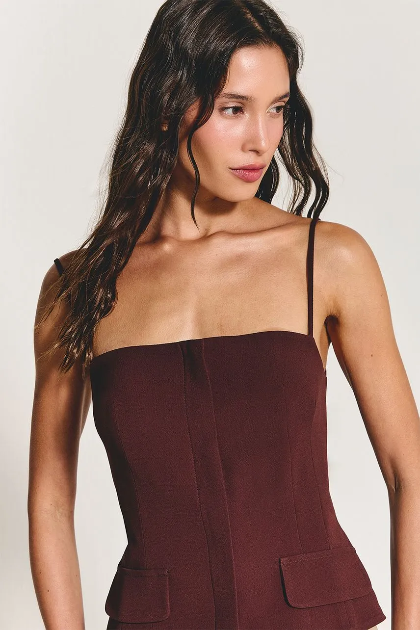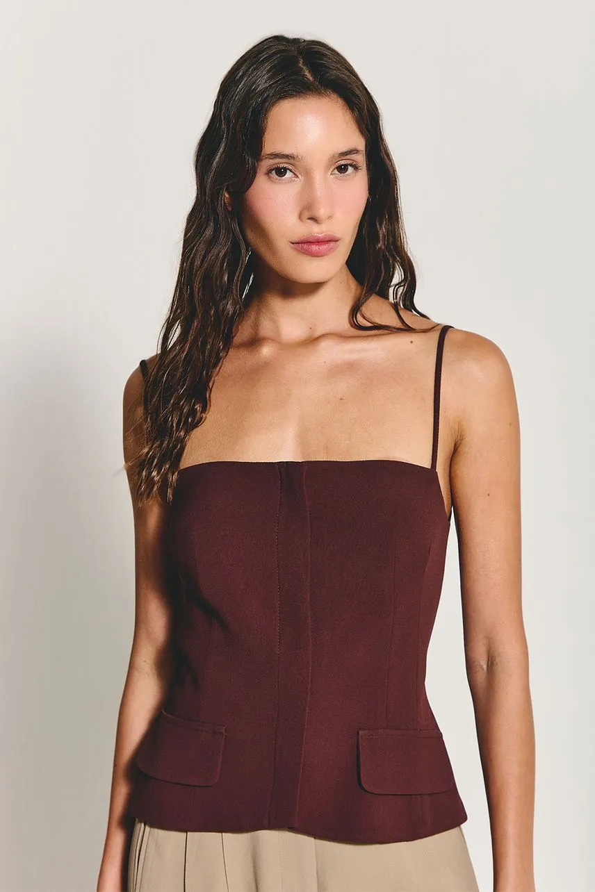 A Blusa Athena é confeccionada em crepe de acetato e possui fechamento frontal por zíper metálico. Levemente estruturada e com alças finas, proporciona estética delicada e elegante.