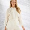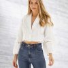 A blusa Berri é confeccionada em linho. A peça apresenta detalhes vazados em renda, proporciona ao visual um estilo elegante e romântico. Possui comprimento cropped, manga puff, caimento leve ao corpo, lapela com renda em borda, decote em V e acabamento pespontado. Uma sugestão de look é a possibilidade de utilizá-la aberta como terceira peça.