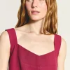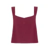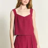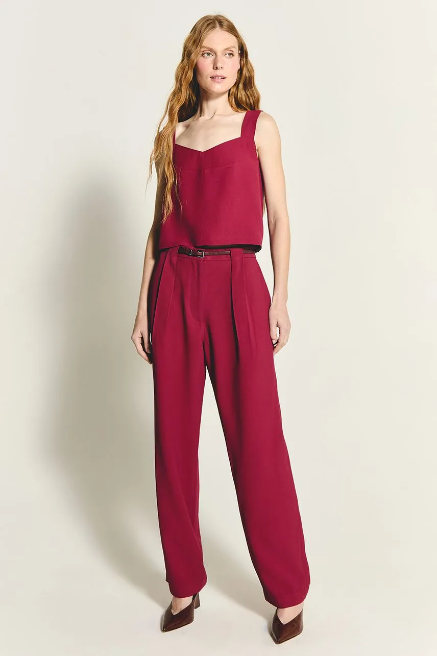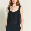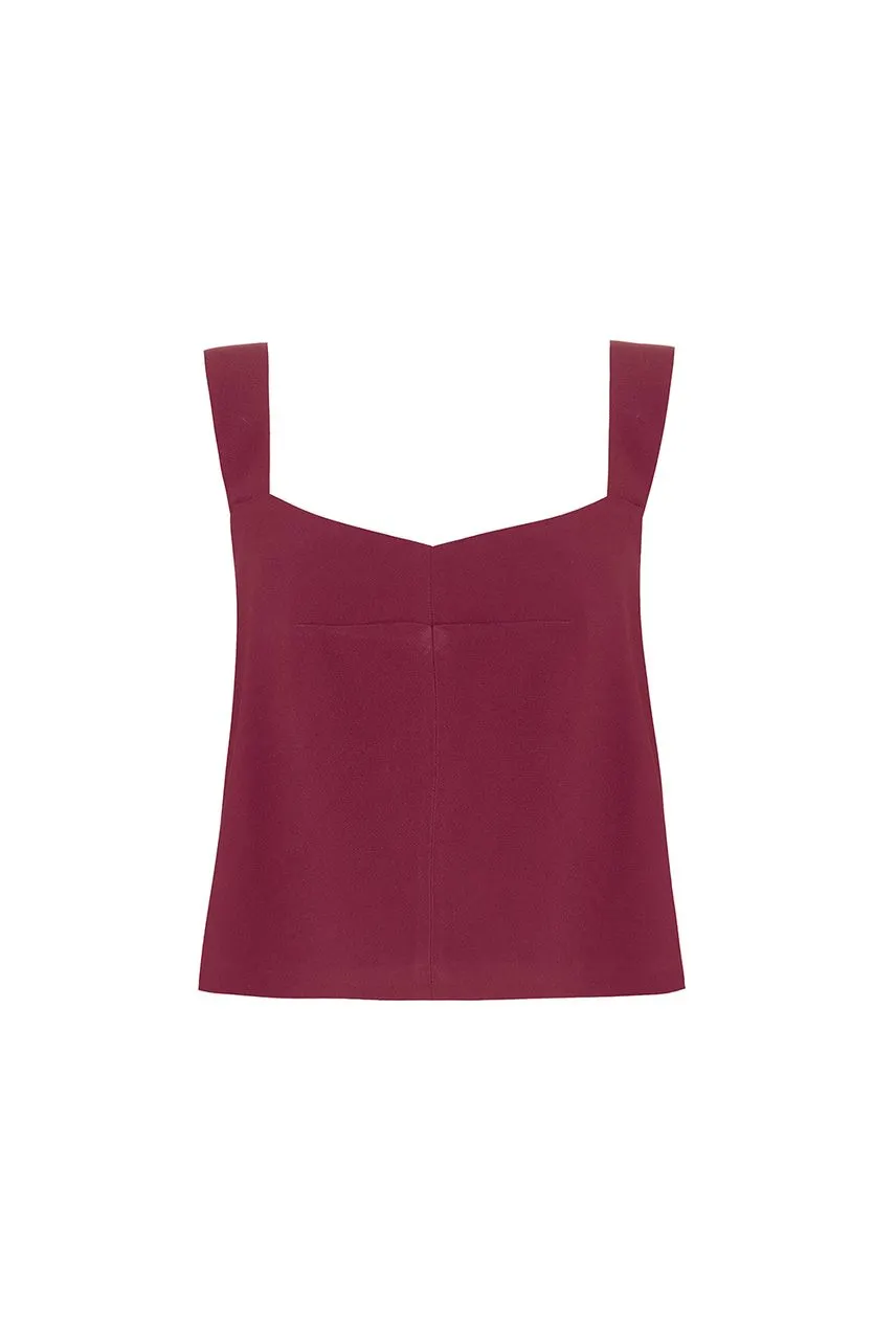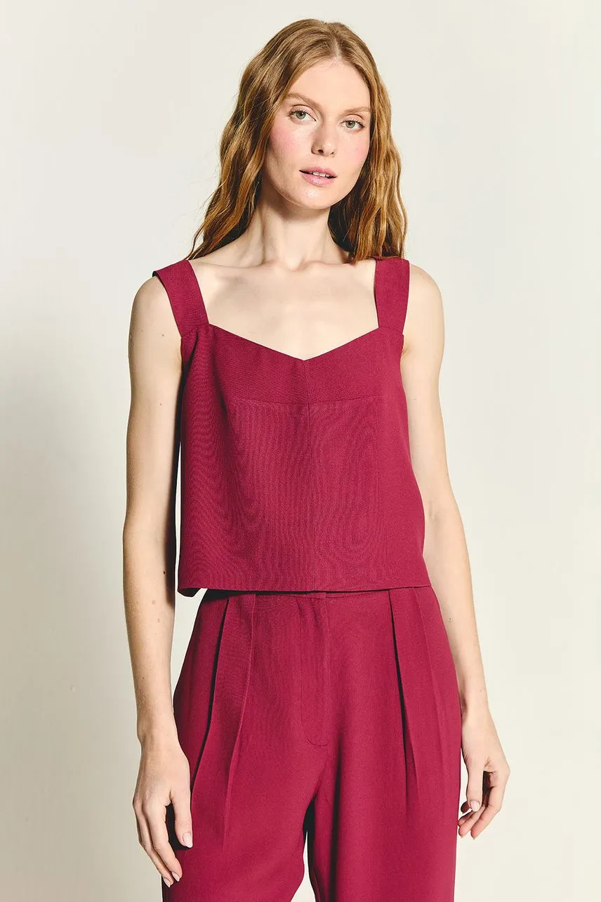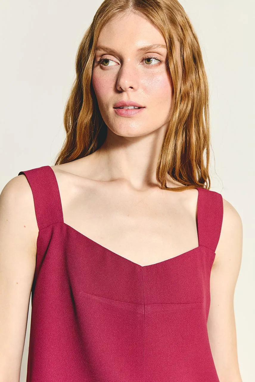 Blusa em crepe sem mangas e alças largas, decote reto e comprimento curto. Possui detalhe no busto e fechamento por zíper nas costas.