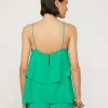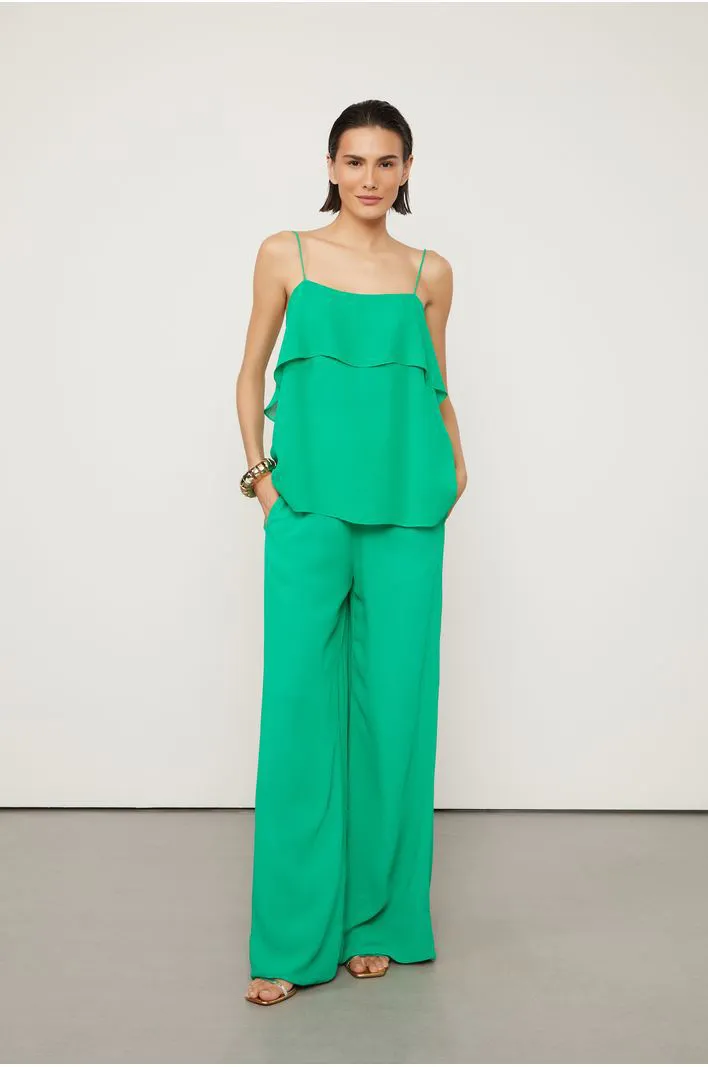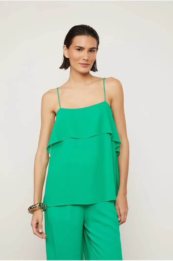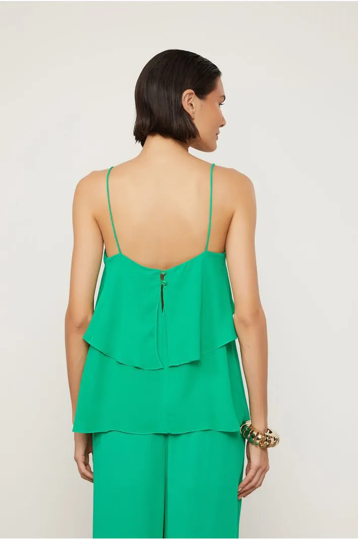 BLUSA EM 100% VISCOSE ALÇA FINAS E CORPO COM CAMADAS FECHAMENTO EM BOTÕES NAS COSTAS