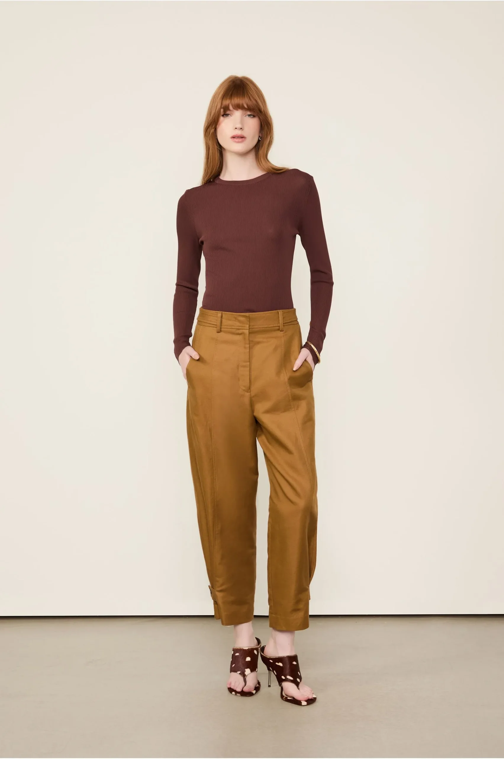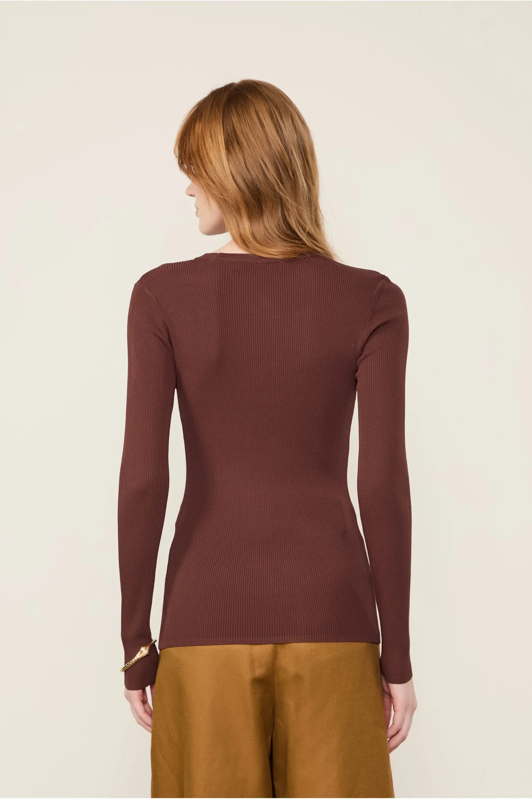 Blusa De Tricot Canelado Manga Longa Básica Marrom Dries – Animale