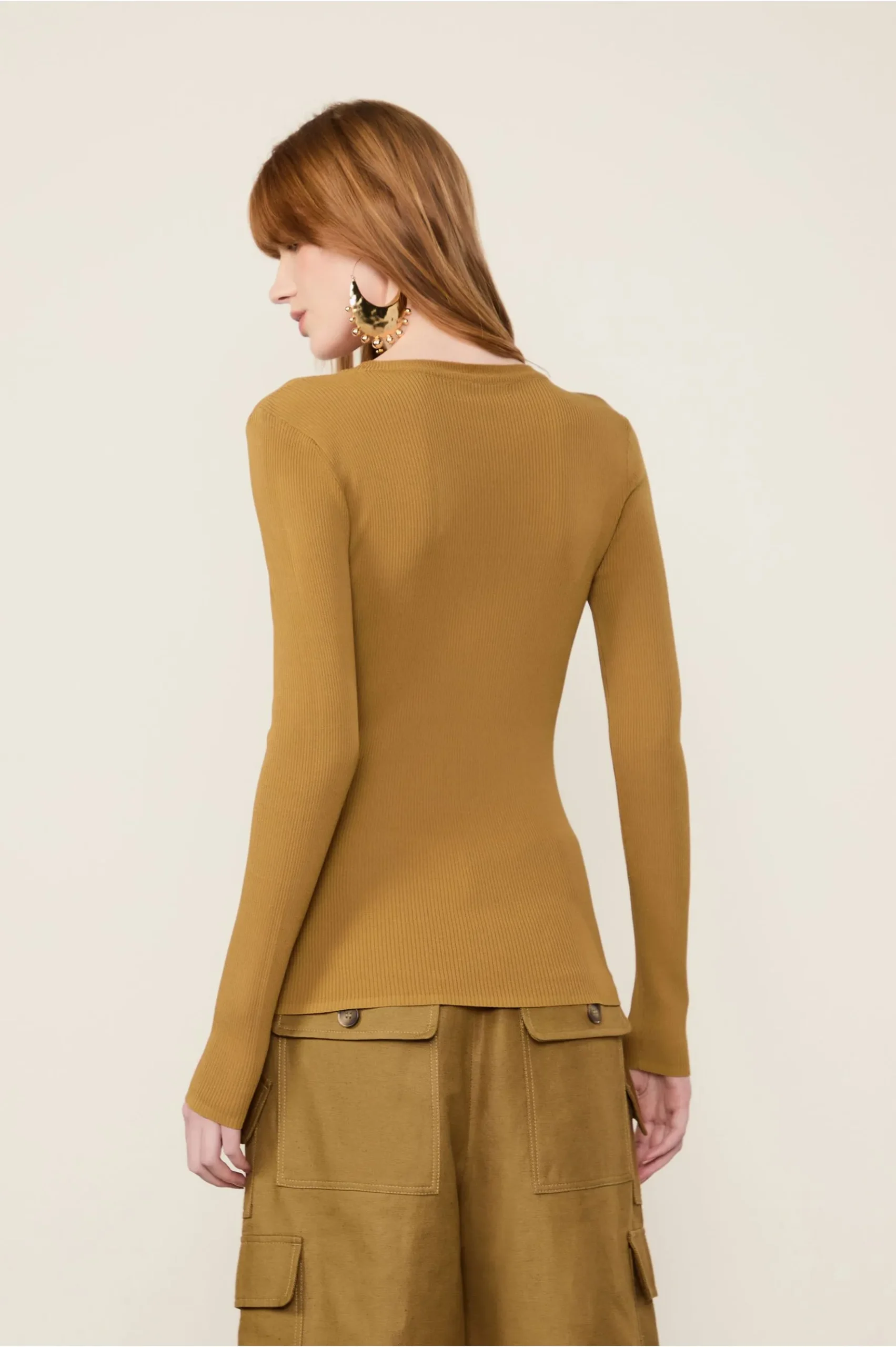 Blusa De Tricot Canelado Manga Longa Básica