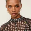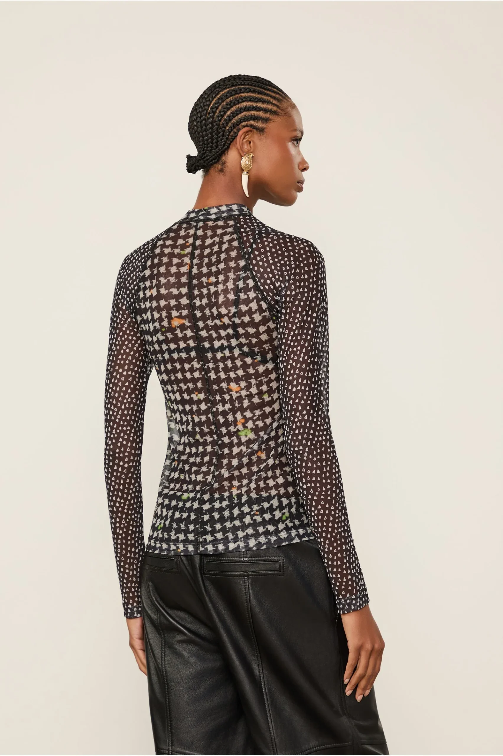 Blusa De Tule Gola Alta Alta Pied De Poule – Animale