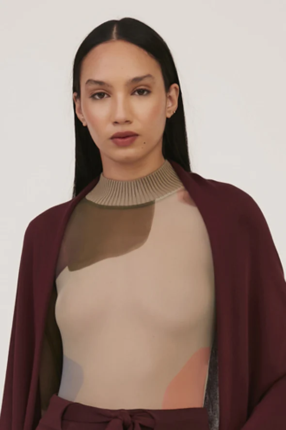 Blusa Gola Alta Manga 3/4 em Tule – Viviane Furrier