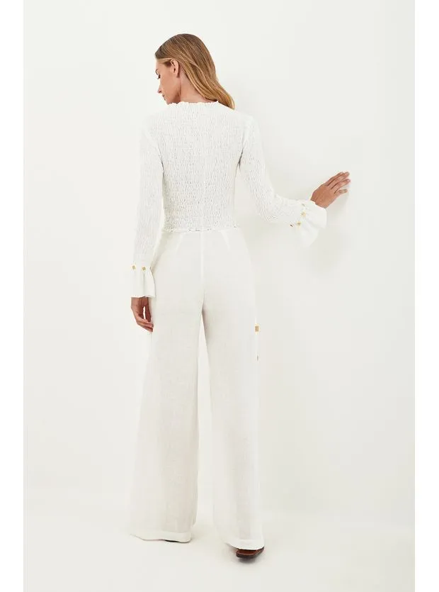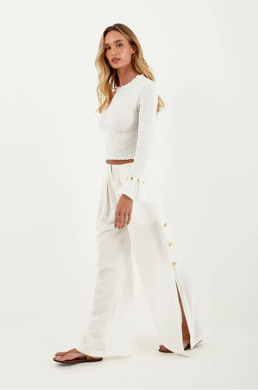 Para ter por diversas temporadas, a blusa de manga comprida branca pode ser combinada com shorts, saias e calças da coleção. Experimente usá-la com sandálias, bolsas e outros acessórios ViX. – Todo em lastex, com modelagem justinha – Punho com leve franzido – Detalhe em metais dourados contornando os punhos Detalhes feitos à mão no ateliê ViX e Uma silhueta clássica.