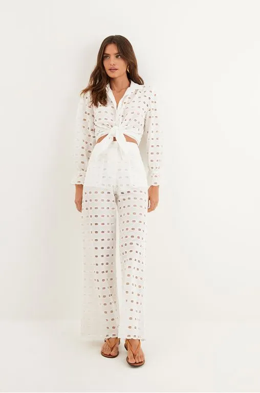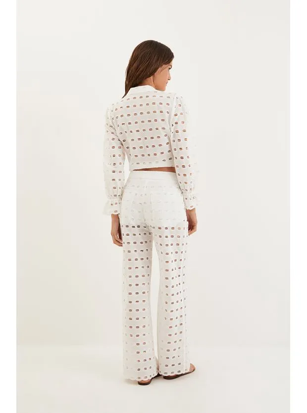 Com um novo toque em uma silhueta clássica, a calça de laise branca Raya é uma peça cool para combinar com tops e blusas da coleção. Leve seu look do dia para noite com flats, sandálias altas, bolsas e outros acessórios ViX.