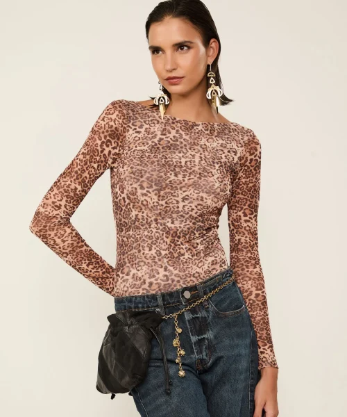 Body De Tule Com Decote Meia Taça Pied De Poule – Animale