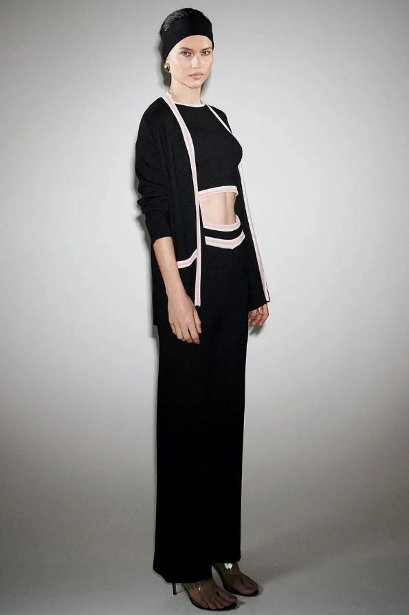 A calça Betina é confeccionada em tricot. A peça apresenta modelagem pantalona e cós com detalhes listrados, proporcionando um visual comfy e moderno. Possui acabamento pespontado. Por se tratar de um tecido delicado, é necessário cuidado ao lavar.