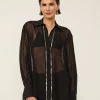 Calça De Georgette Preto Com Detalhe Em Strass – Animale