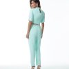 A calça Harper é confeccionada em alfaiataria. A peça apresenta modelagem carrot, com aplicação de strass cristal no cós, proporcionando um visual elegante e glamouroso. Possui cintura alta, bolso fake posterior, bolso faca, zíper de nylon, botão interno, colchete de metal e acabamento pespontado.