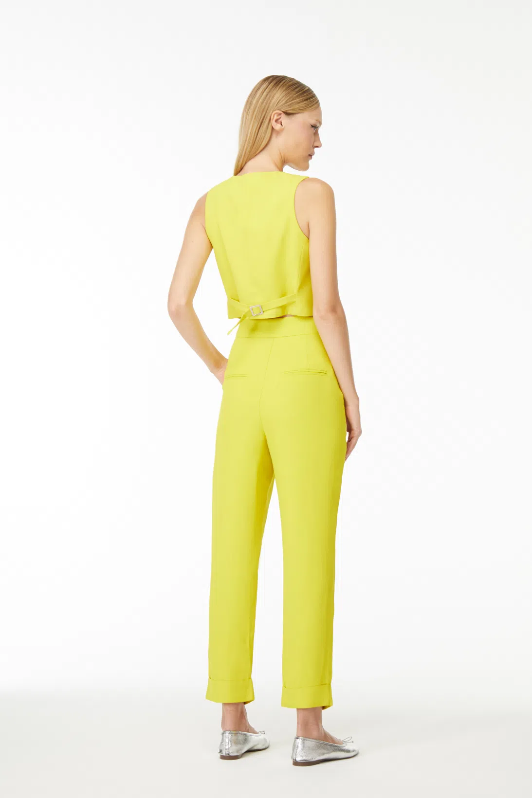 A calça Heidi é confeccionada em alfaiataria. A peça apresenta modealgem social com caimento reto e barra italiana, proporcionando um visual clássico e elegante. Possui cintura média, detalhes de pence anterior, bolso faca e bolso posterior fake, acabamento pespontado, fechamento por zíper de nylon, botão interno e colchetes de metal.