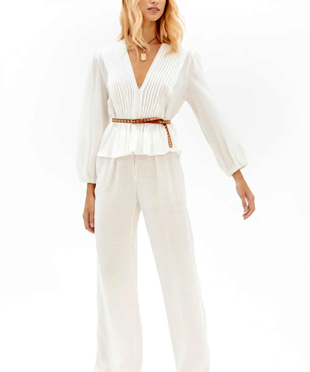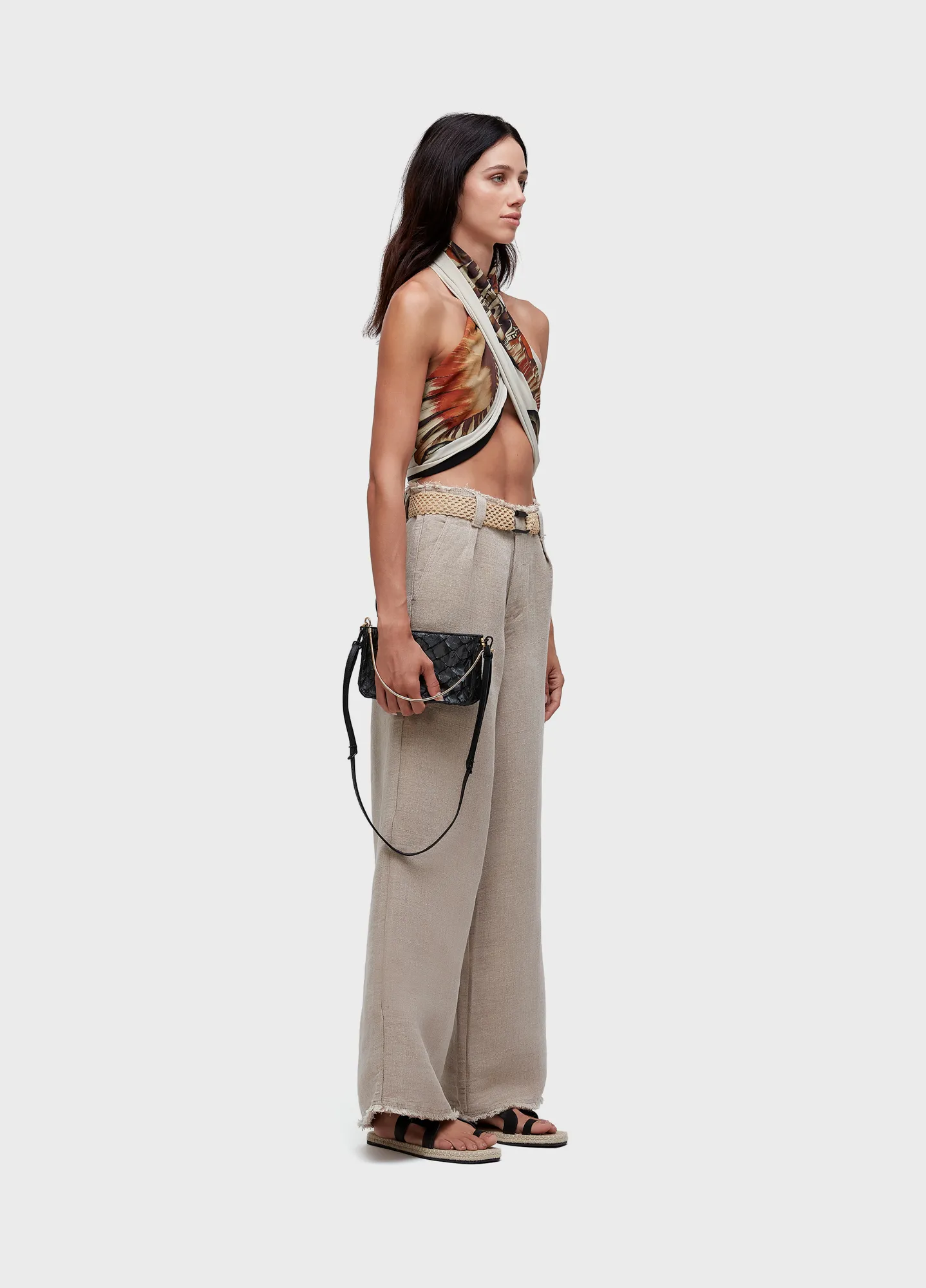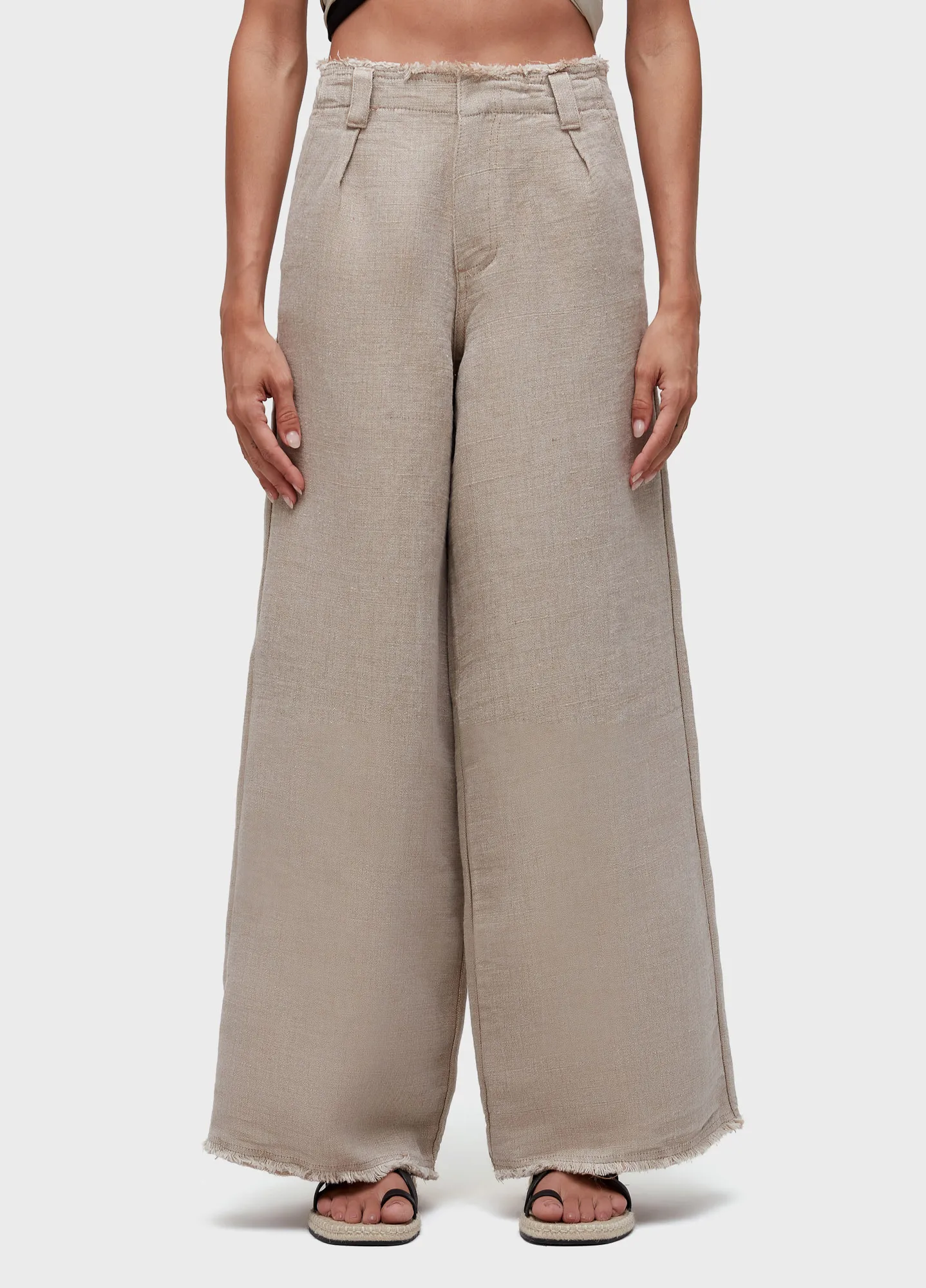 Calca feminina. Juta com linho. Reta, pregas na frente, cos desfiado, acabamentos com pesponto de denim. Respect our people, e-fabrics, juta amazonia.