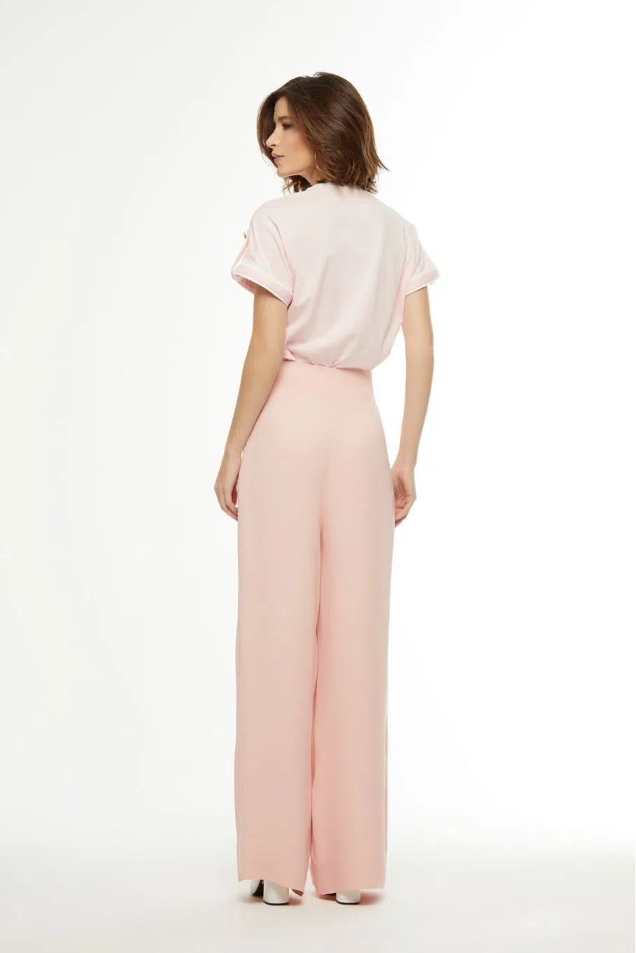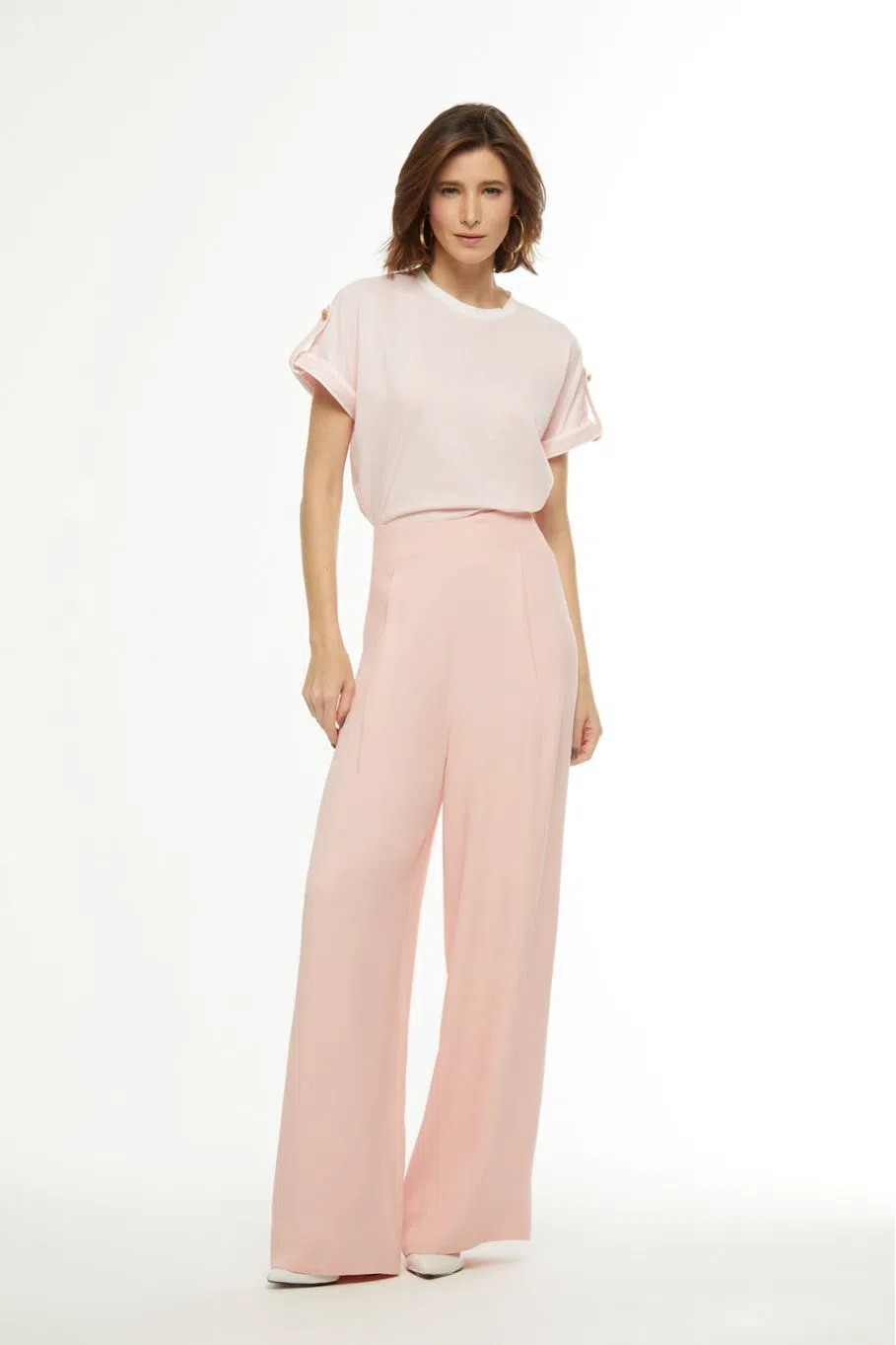 A calça Lana é uma alfaiataria confeccionada no tecido crepe patou. A peça apresenta modelagem pantalona e cintura alta, proporcionando um visual moderno e elegante. Possui detalhes de pences anterior e posterior, forro embutido até a barra, zíper invisível lateral, barra larga e acabamento pespontado.