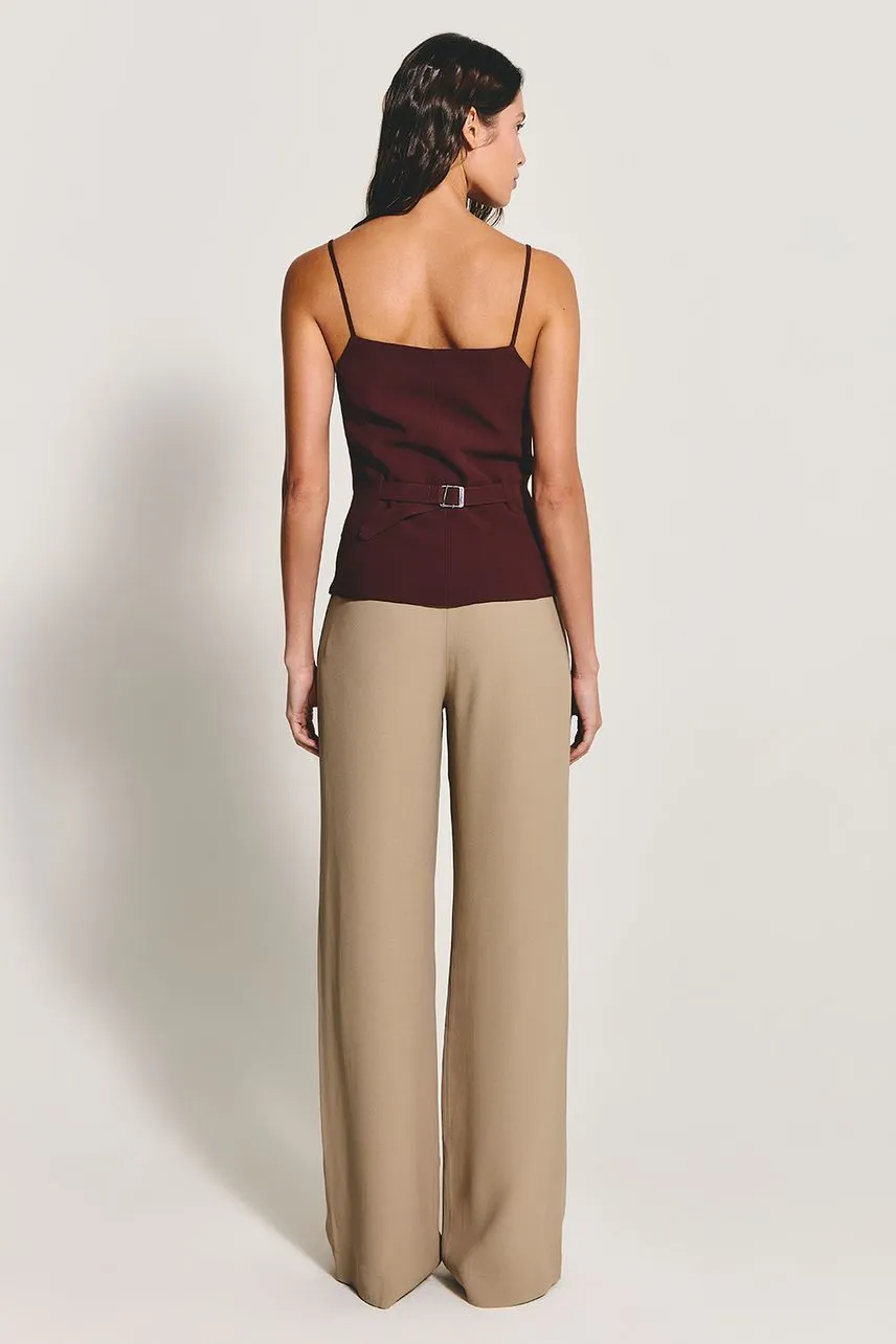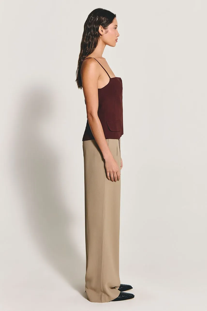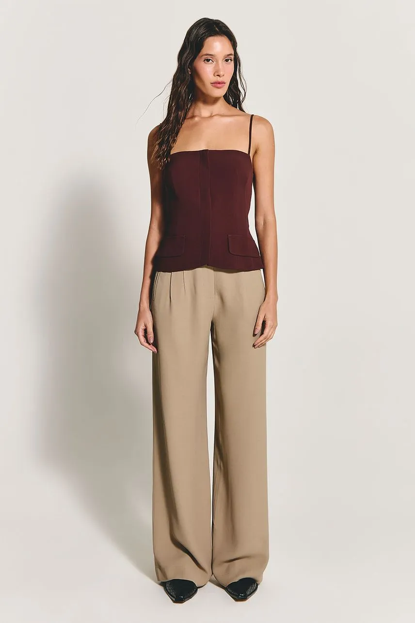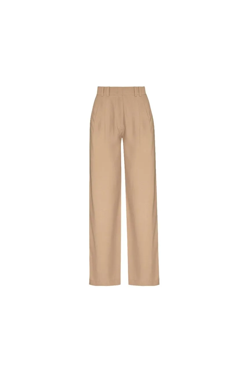 Calça de alfaiataria feminina feita em crepe de acetato, com modelagem reta que oferece um visual atemporal. Com cintura média, a peça conta com pregas frontais que proporcionam um caimento sofisticado. O cós com passantes duplos e o fechamento por zíper, gancho e botão de segurança. Essa é uma peça coringa para seus looks.