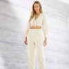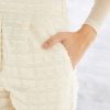 A calça off white é confeccionada em algodão texturizado. A peça apresenta padronagem que proporciona ao look atemporalidade. Possui cós alto, bolsos laterais e modelo faca, caimento reto e acabamento pespontado. Fecho anterior por colchetes metálicos