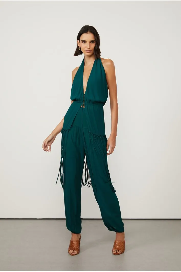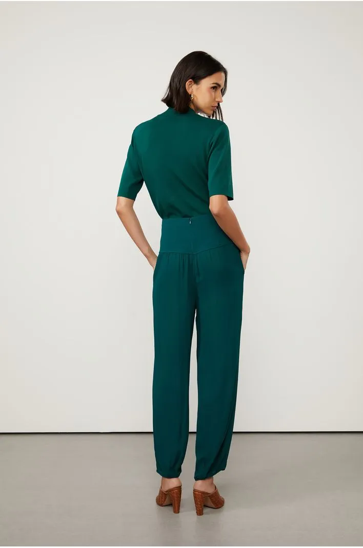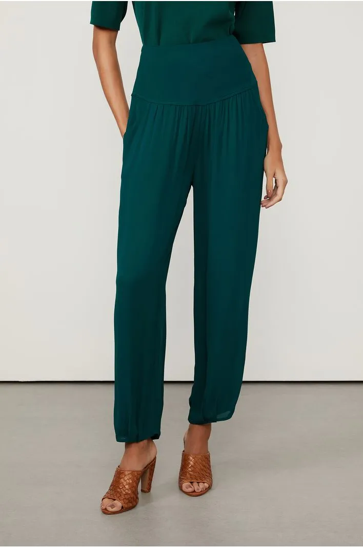Calça de Seda traz para a nossa linha best-seller o Verde Encanto da coleção. O modelo possui pala larga no cós, efeito plissado no quadril, bolsos laterais e fechamento por zíper nas costas. A leve transparência da seda revela discretamente a pele de forma feminina. A pala, ponto-chave da calça, ganha protagonismo quando usada com t-shirts. Para uma produção contemporânea e sofisticada, aposte no top com a mesma proposta de cor e tecido, e repleto de franjas, tendência da temporada.