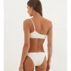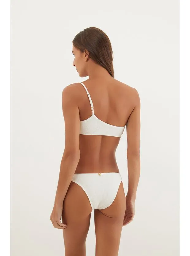 A calcinha de biquíni branca tem a modelagem Brasil. Pode ser usada mais alta ou mais baixa.