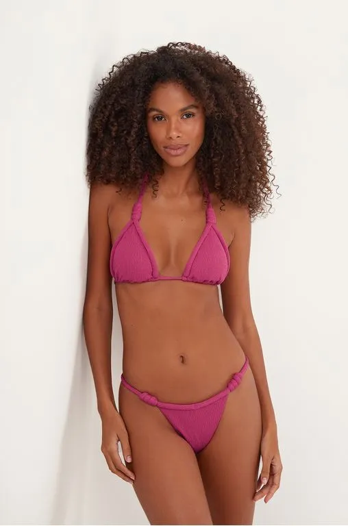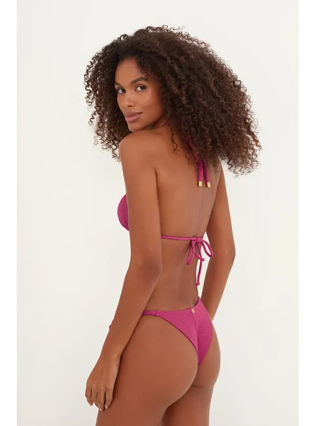 A calcinha de biquíni rosa tem a modelagem Cheeky, com efeito “empina bumbum”: se molda perfeitamente ao corpo sem deixar excesso de tecido. Pode ser usada mais alta ou mais baixa.