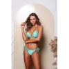 A Calcinha modelo embutida de amarrar nas laterais, com trabalhado torcido feito à mão, na cor aqua.