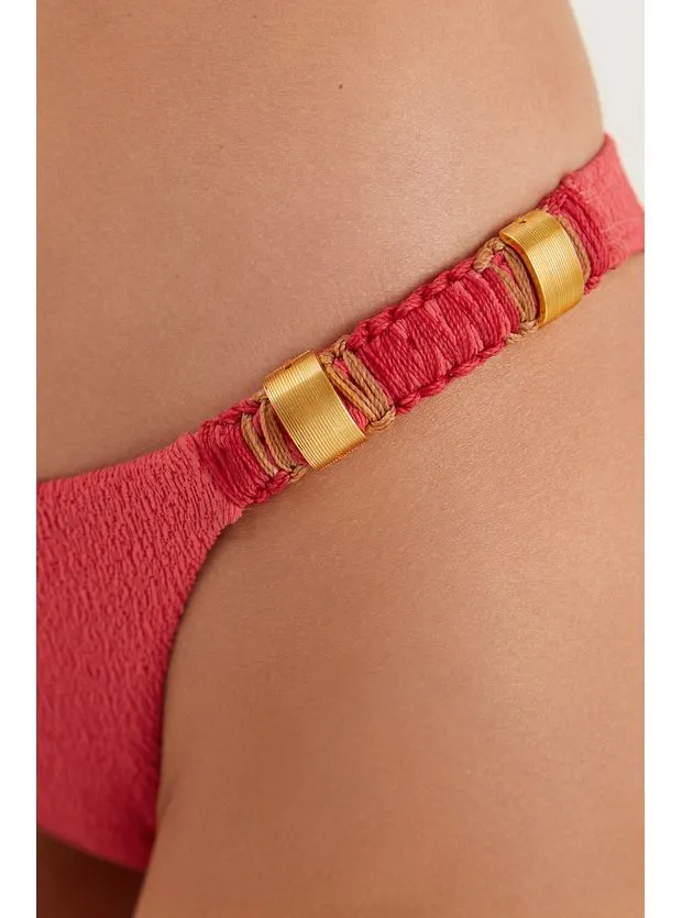 A calcinha de biquini raspberrytem modelagem Fany, com as tiras laterais mais largas.