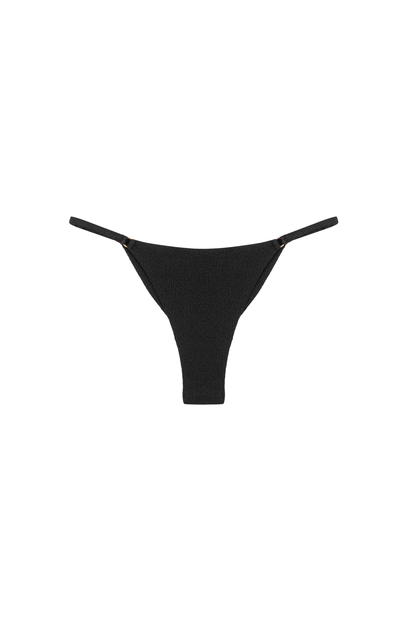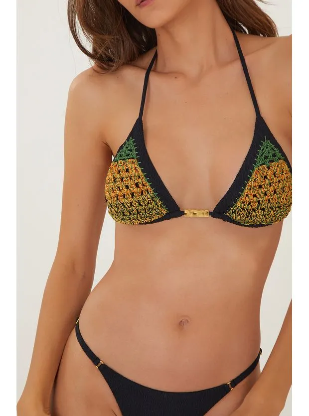 A calcinha de biquíni preta tem a modelagem Cheeky, com efeito “empina bumbum”: se molda perfeitamente ao corpo sem deixar excesso de tecido. Pode ser usada mais alta ou mais baixa. – Cobertura pequena – Tiras estreitas nas laterais com regulagem – Detalhes de argolinhas em metal dourado – Detalhes feitos à mão no ateliê ViX