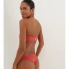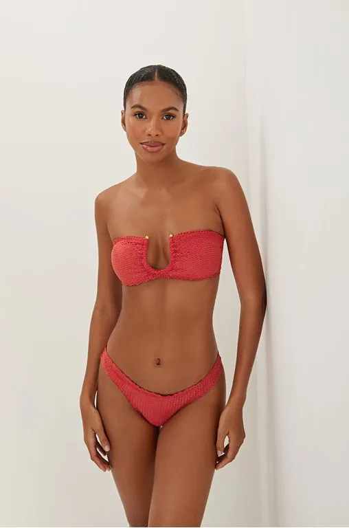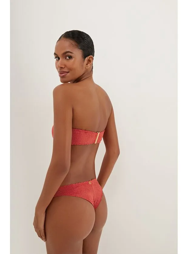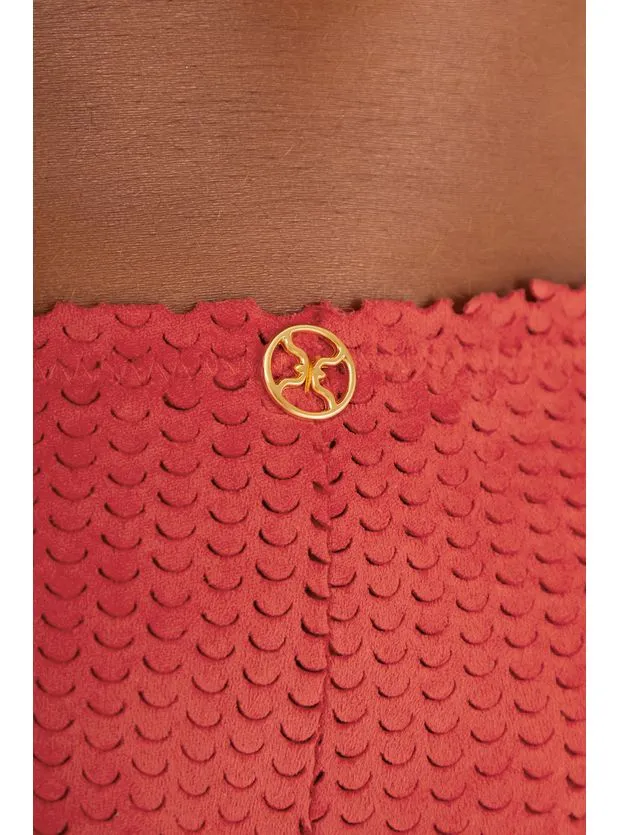 A calcinha de biquíni vermelha tem a modelagem Cheeky, com efeito “empina bumbum”: se molda perfeitamente ao corpo sem deixar excesso de tecido. Pode ser usada mais alta ou mais baixa. – Cobertura pequena O forro desta peça é feito com fio reciclado pré-consumo, uma base mais responsável, da linha CARE.
