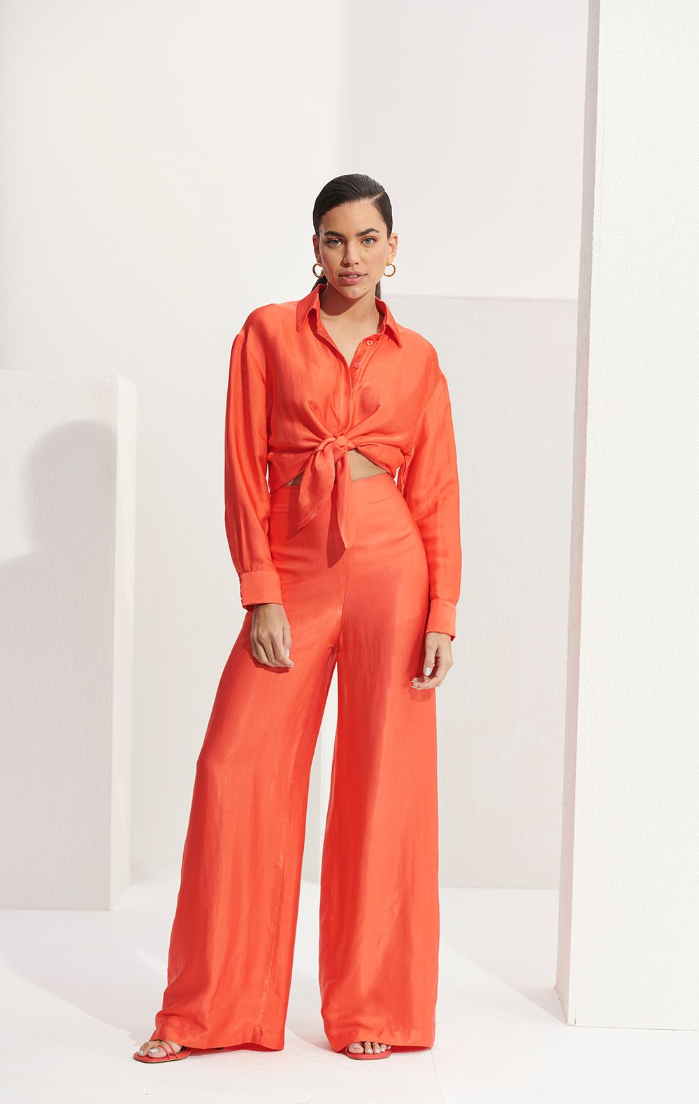 CAMISA COM AMARRAÇÃO ACETINADA MARKER- LCECCI