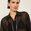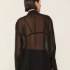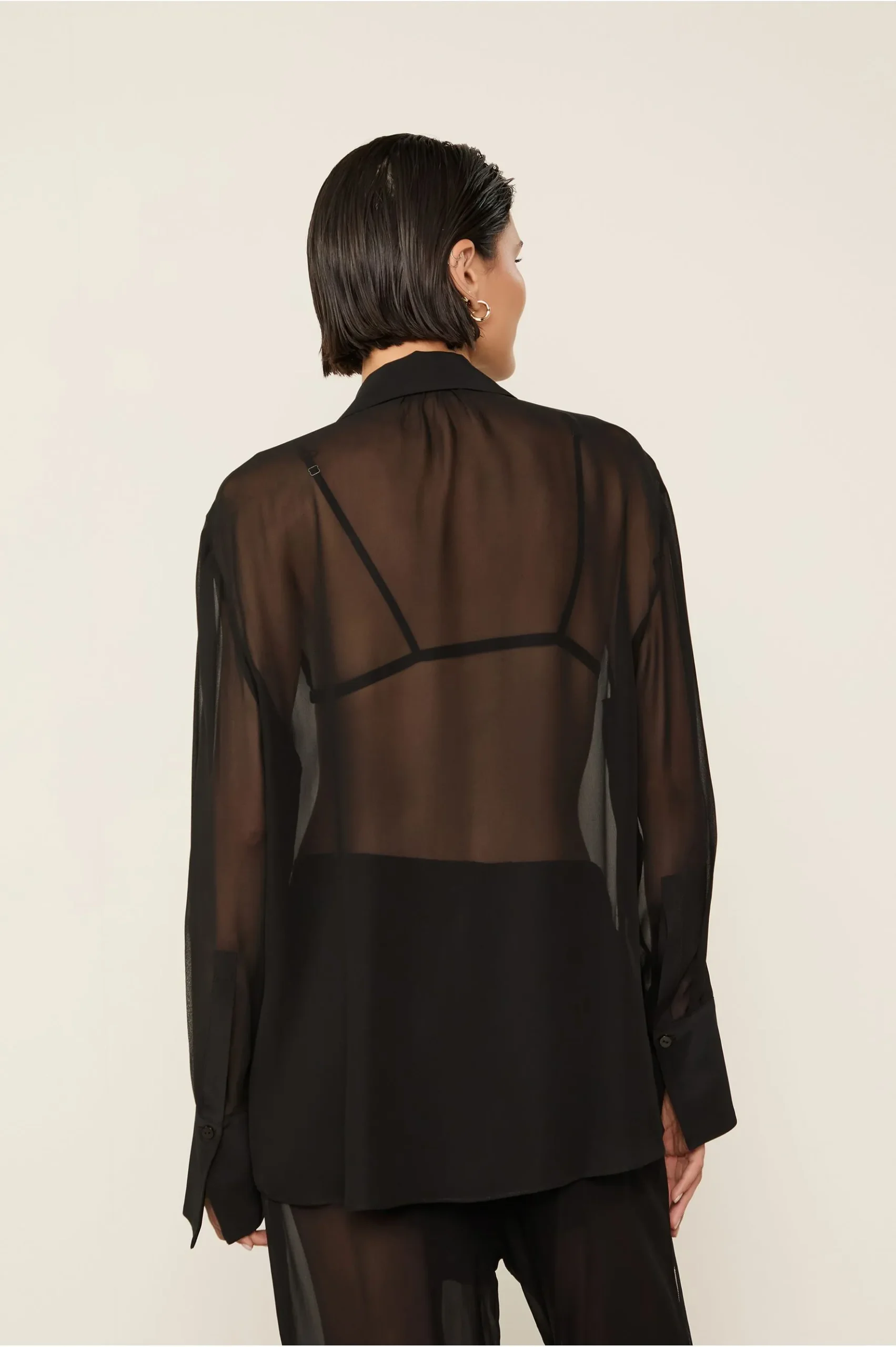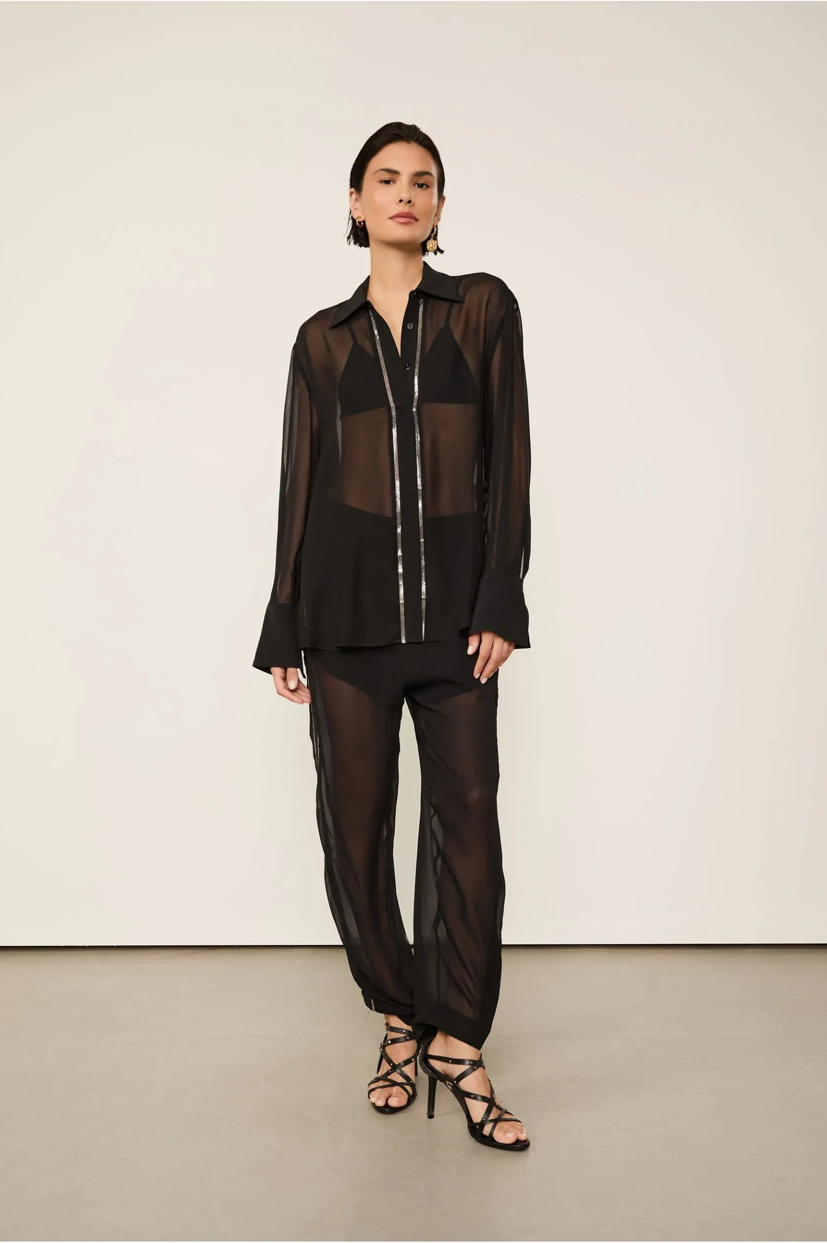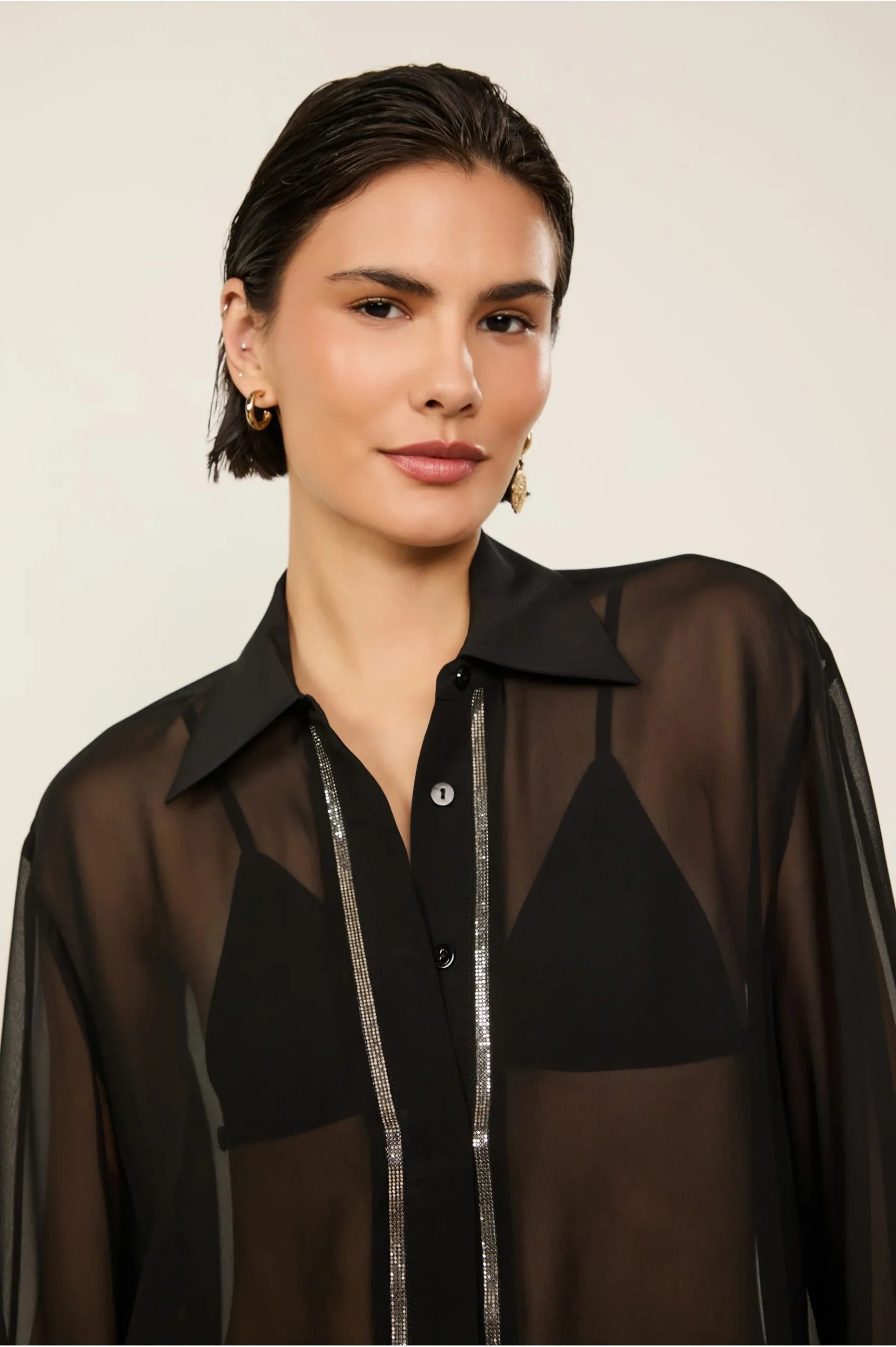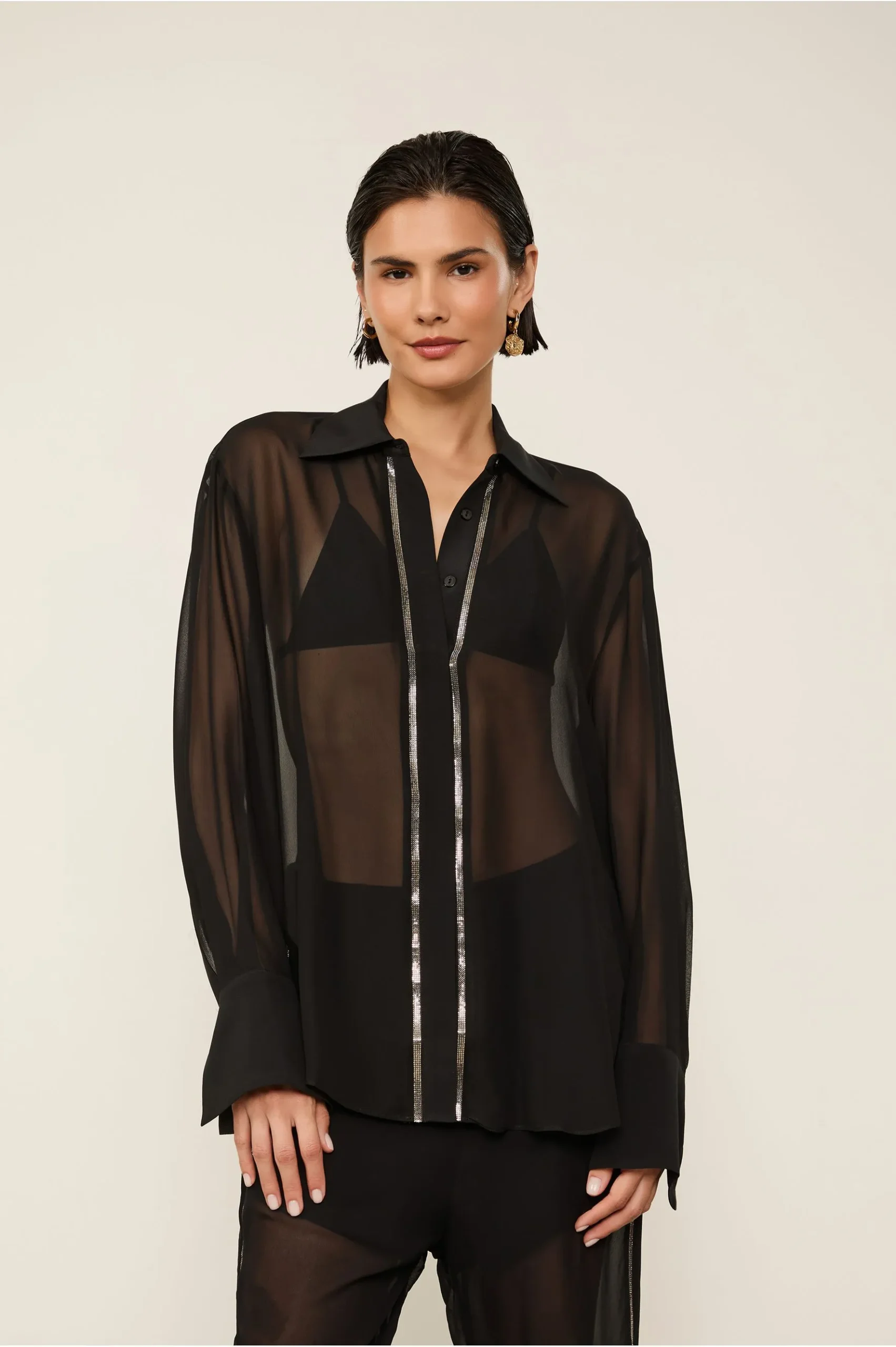 Camisa De Georgette Preta Manga Longa Com Strass – Animale