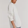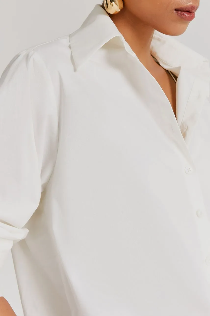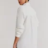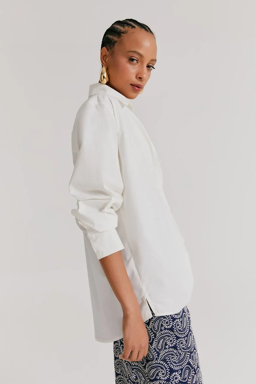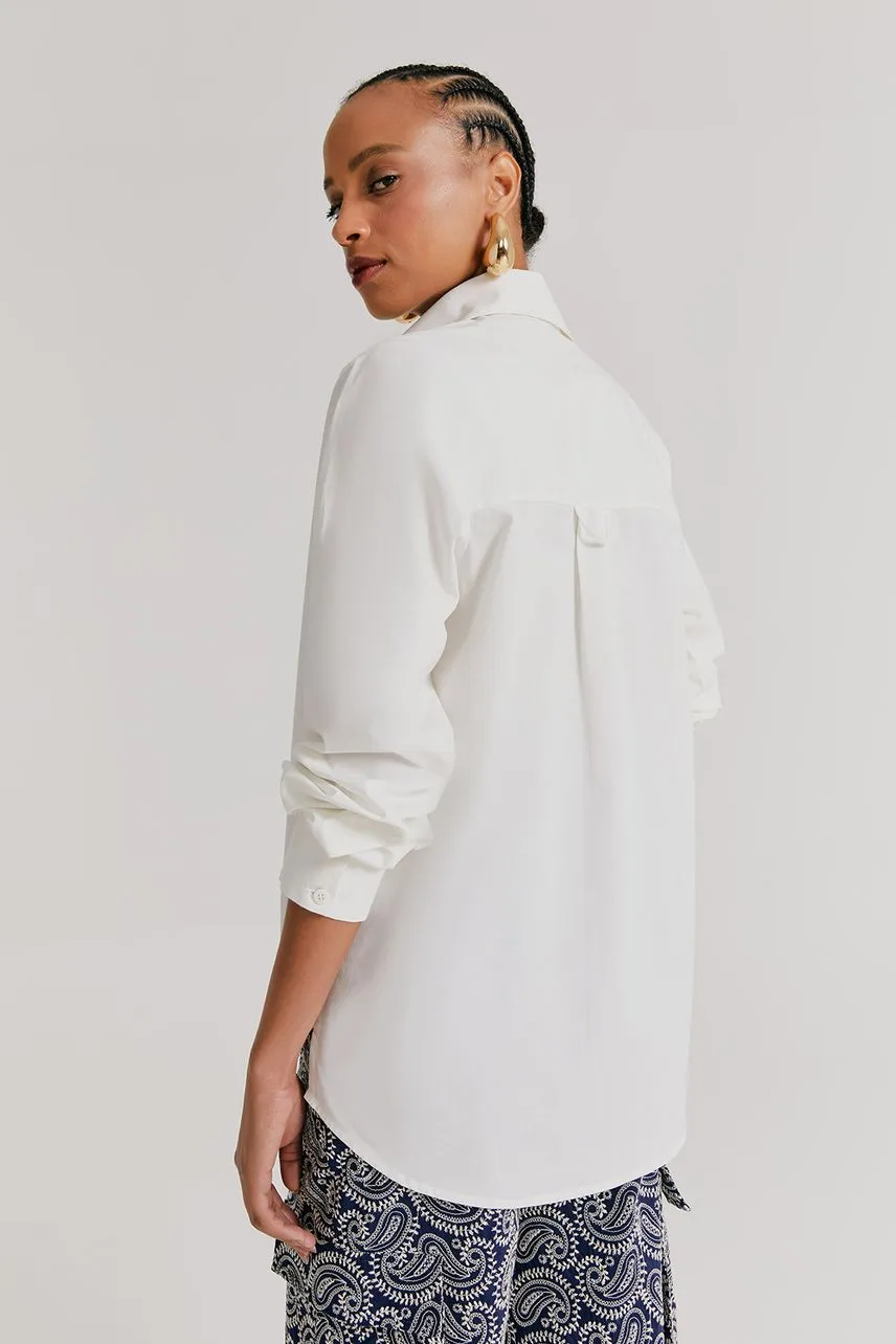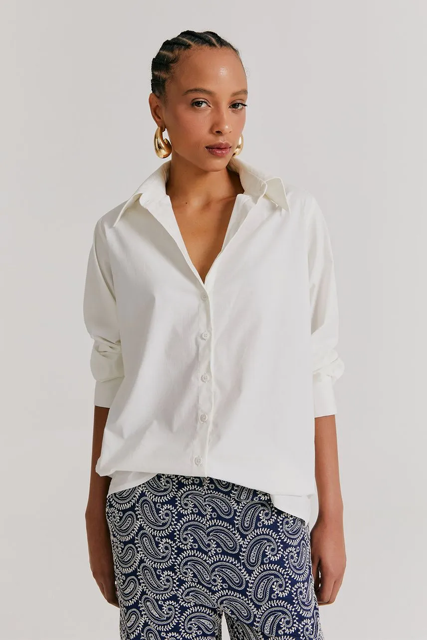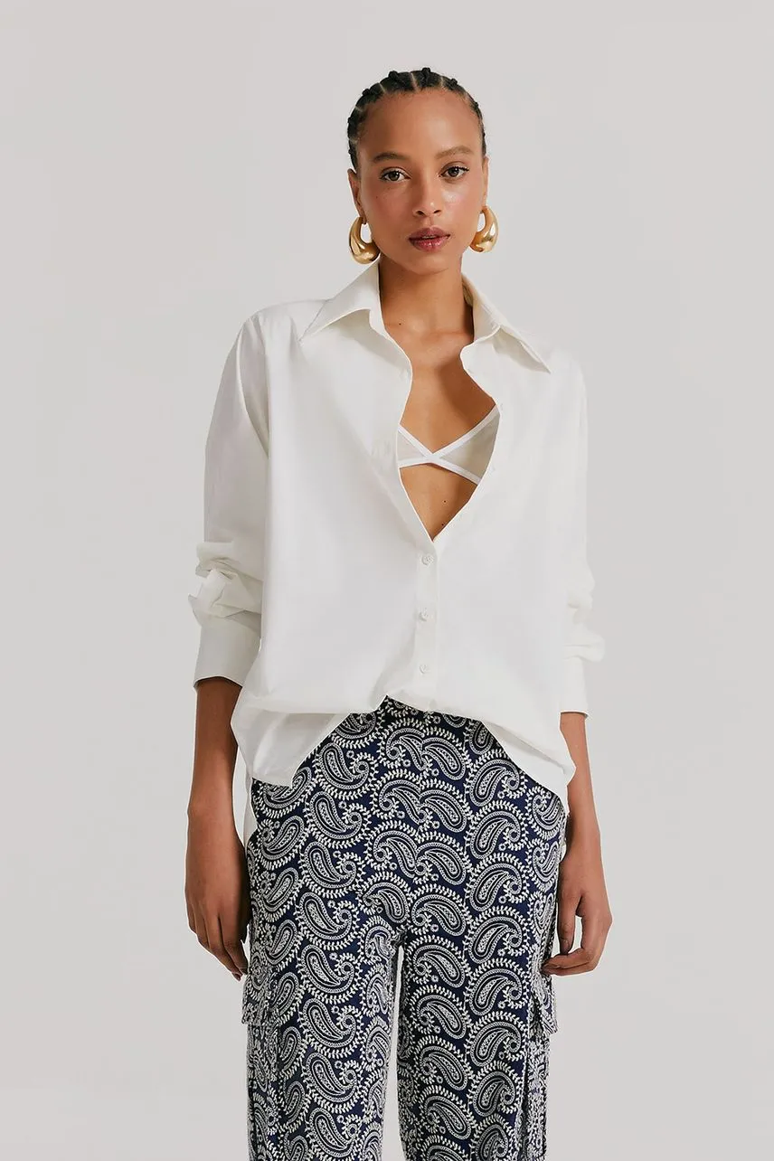 Camisa em tricoline com modelagem oversized e fechamento frontal por botões.