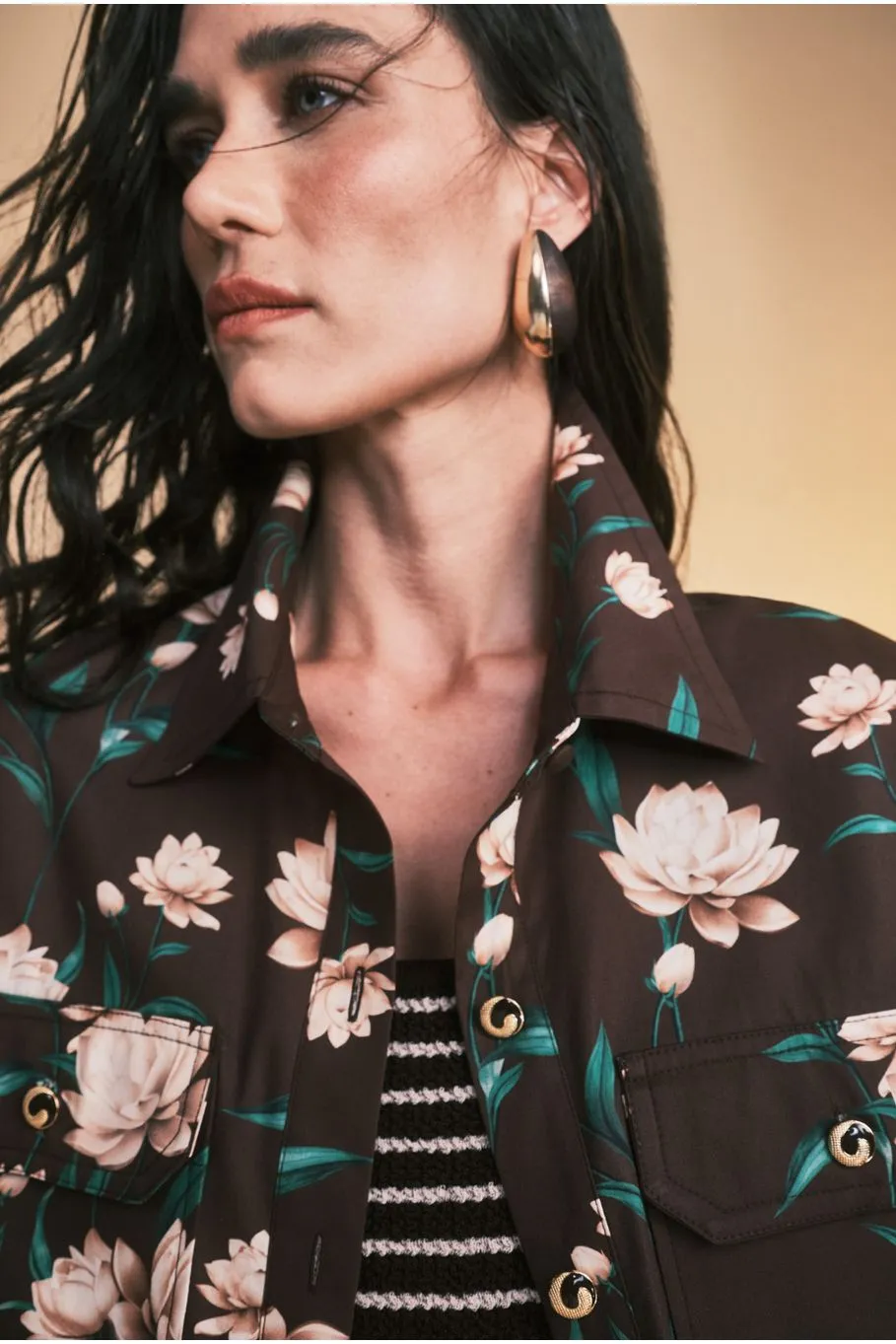 A camisa Lis é confeccionada em tricoline. A peça com a nossa estampa exclusiva de peônia apresenta modelagem reta com maxi bolsos anterior, proporcionando um visual moderno e romântico. Possui comprimento tradicional, colarinho, fechamento por botões anterior, punho marcado e acabamento pespontado.