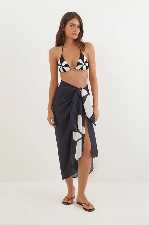 Feel the Bossa: novidade ViX, a estampa traz uma flor em cor contrastante. Canga estampada. Combine com seu biquini preferido, sandálias flats, bolsa de palha, chapéu e outros acessórios.