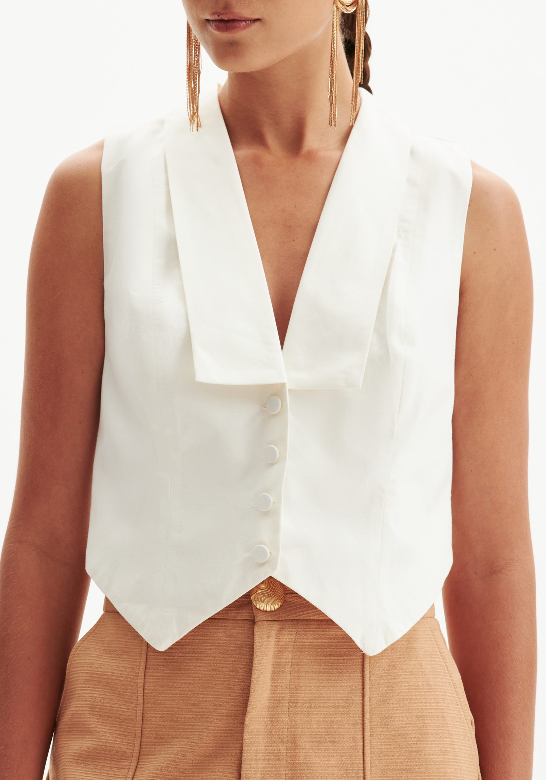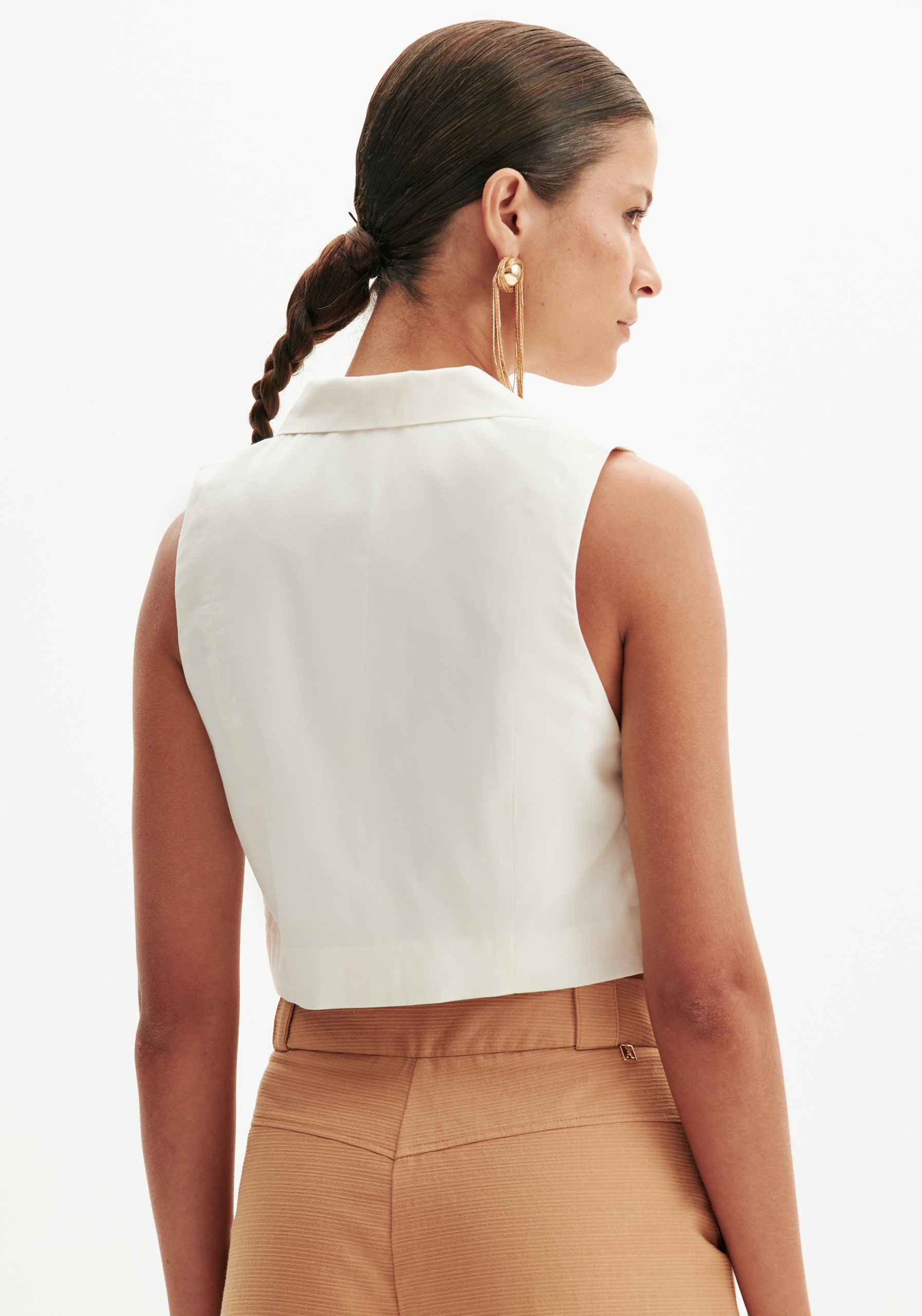O colete curto feminino possui modelagem slim, decote em v e fecho frontal com botões. As lapelas conferem um ar clássico à peça e elevam as composições do dia a dia. Aposte nesta versão para inspirar estilo do escritório ao happy hour!