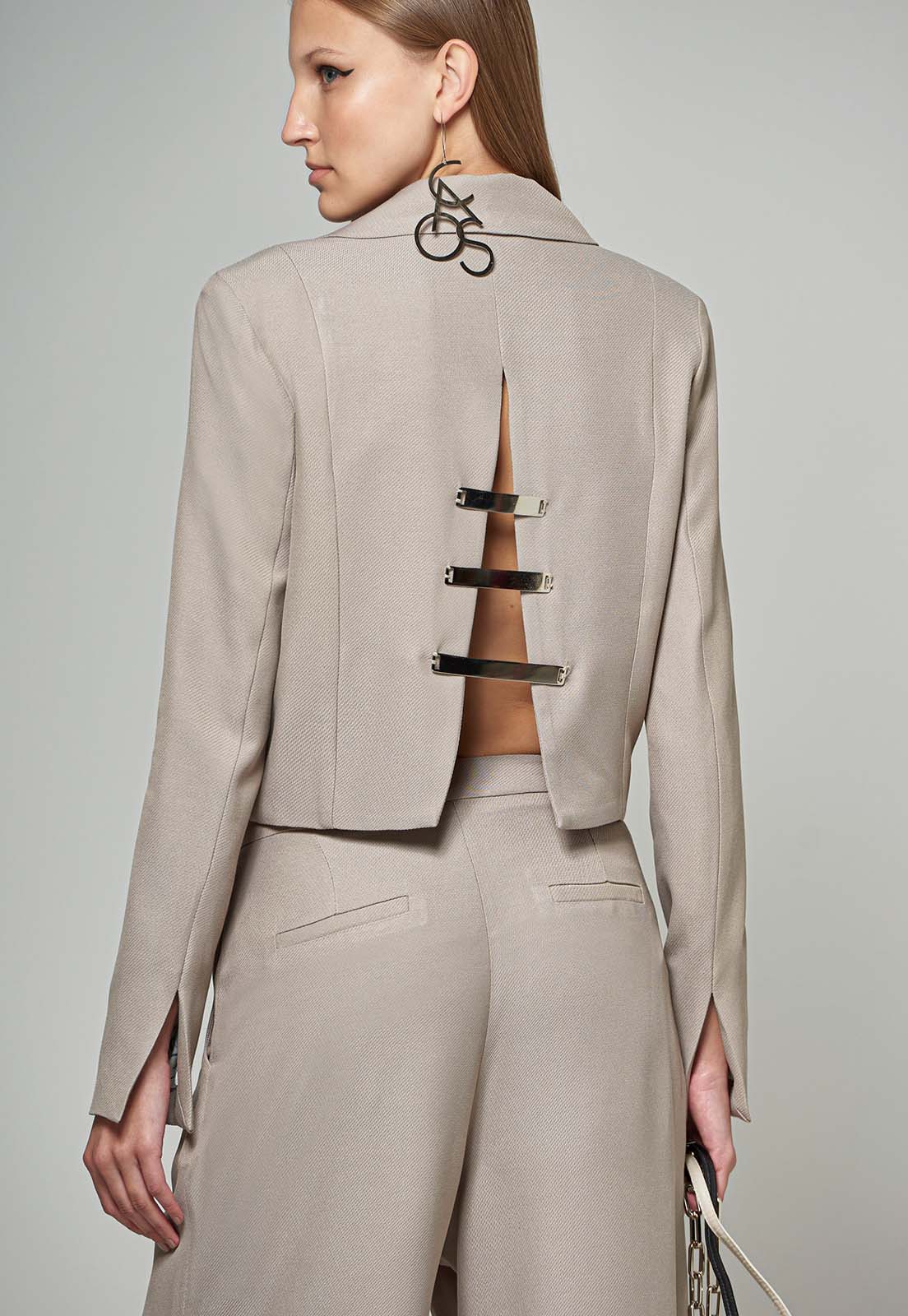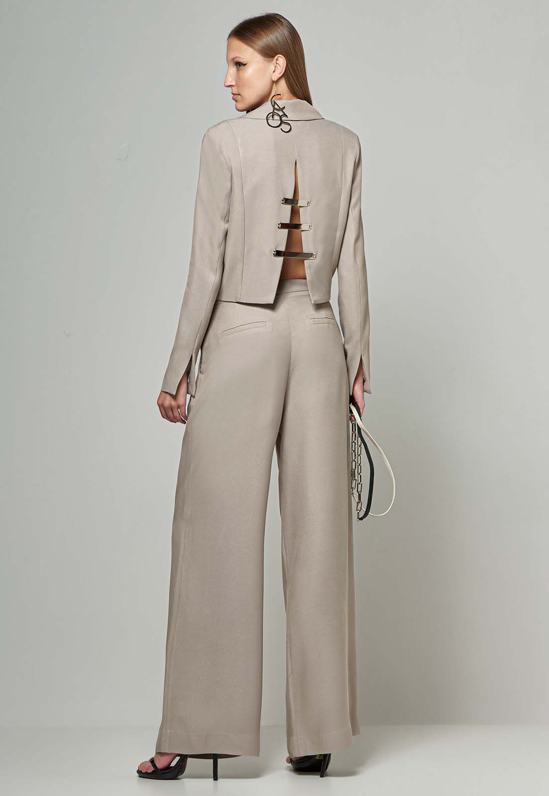 Conjunto blazer metal costas e calça conjunto blazer com detalhes metal costas e calça alfaiataria pantalona.