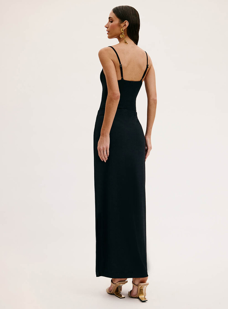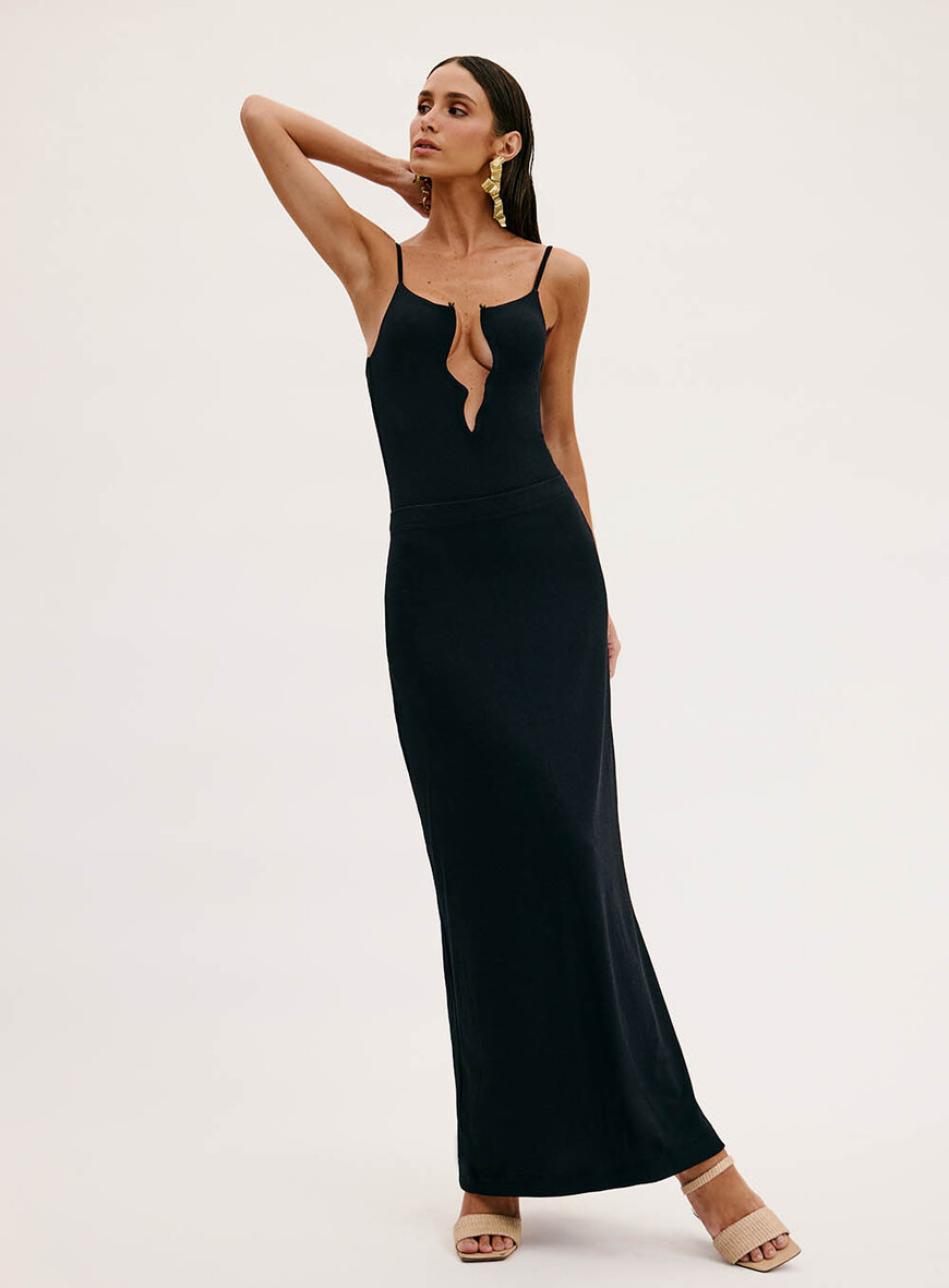 O Conjunto Saia E Maiô Gabriela é uma opção elegante e sofisticada para diversas ocasiões. Maiô apresenta modelagem comfy, alças com regulador, detalhe frente com aviamento embutido e barra com acabamento simples.