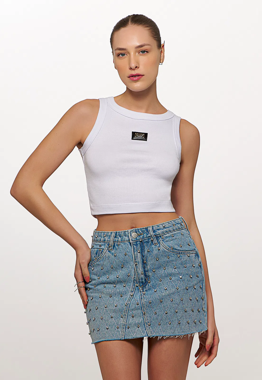 Cropped Malha Canelada com Placa Couro – CAOS