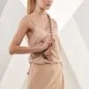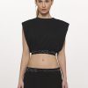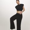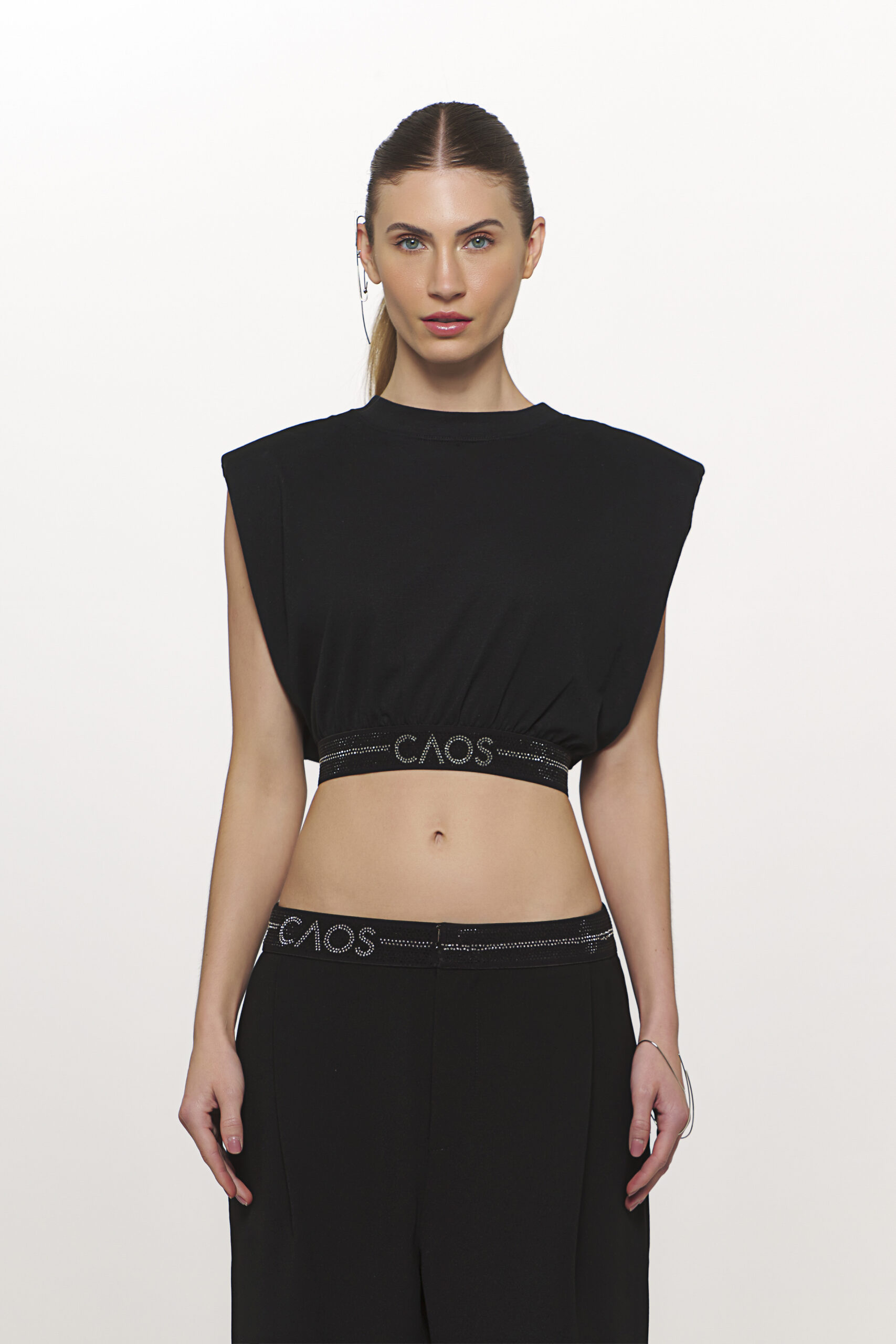Nosso cropped em malha com mangas muscle tee leva o dna da caos em seu design! com ombreiras embutidas e elástico de ajuste na cintura alta, essa peça modela a silhueta e é super confortável! possui transfer da marca na cintura dando mais destaque e elegância para um visual #dailychic! aposte em calça wide de alfaiataira em off white e crie um look monochrome com conforto e elegância para eventos diurnos!