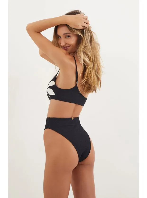 Hot pants preta com cava alta. – Cintura alta – Cobertura média – Detalhes feitos à mão no ateliê ViX