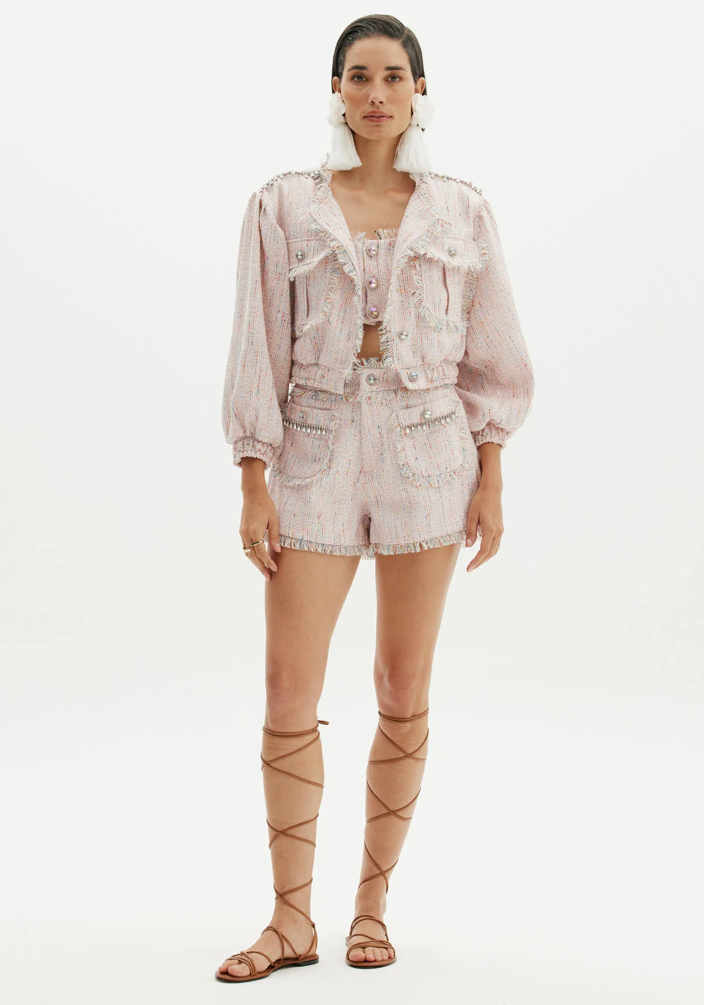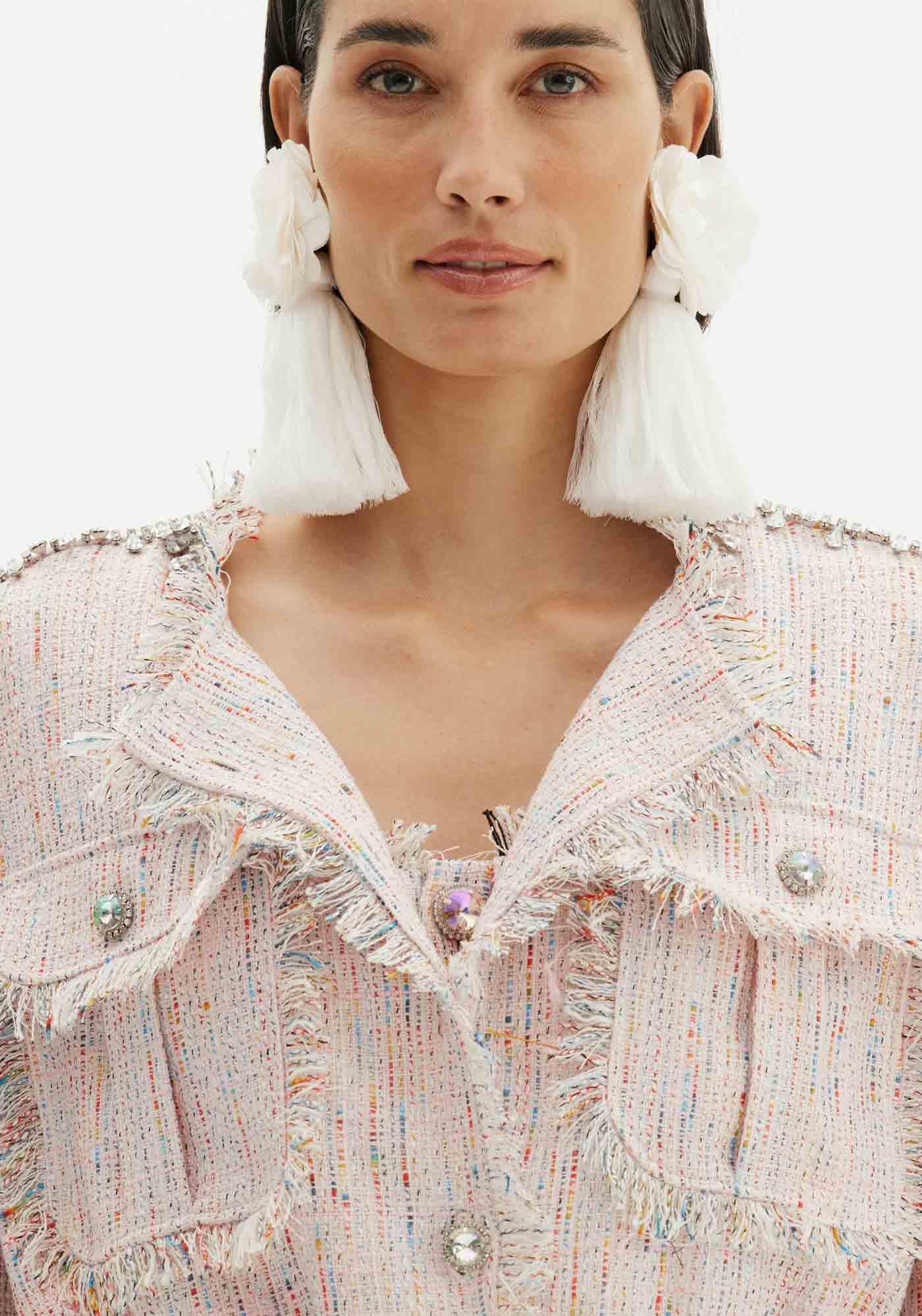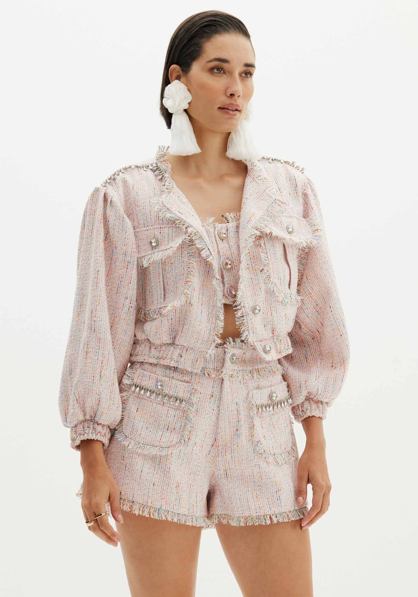 A jaqueta bomber com bordados e acabamento desfiado é uma peça incrível para usar em diversas produções. Traz elegância de feminilidade, além de contar com mangas longas, bolsos e fechamento por botões. Combine com peças de mesma padronagem. Amarante é uma marca elegante com notas românticas. A força, talento e paixão de Eduardo se materializam em peças que são verdadeiros monumentos que enaltecem a mulher brasileira. Um novo olhar e uma nova forma de se vestir.