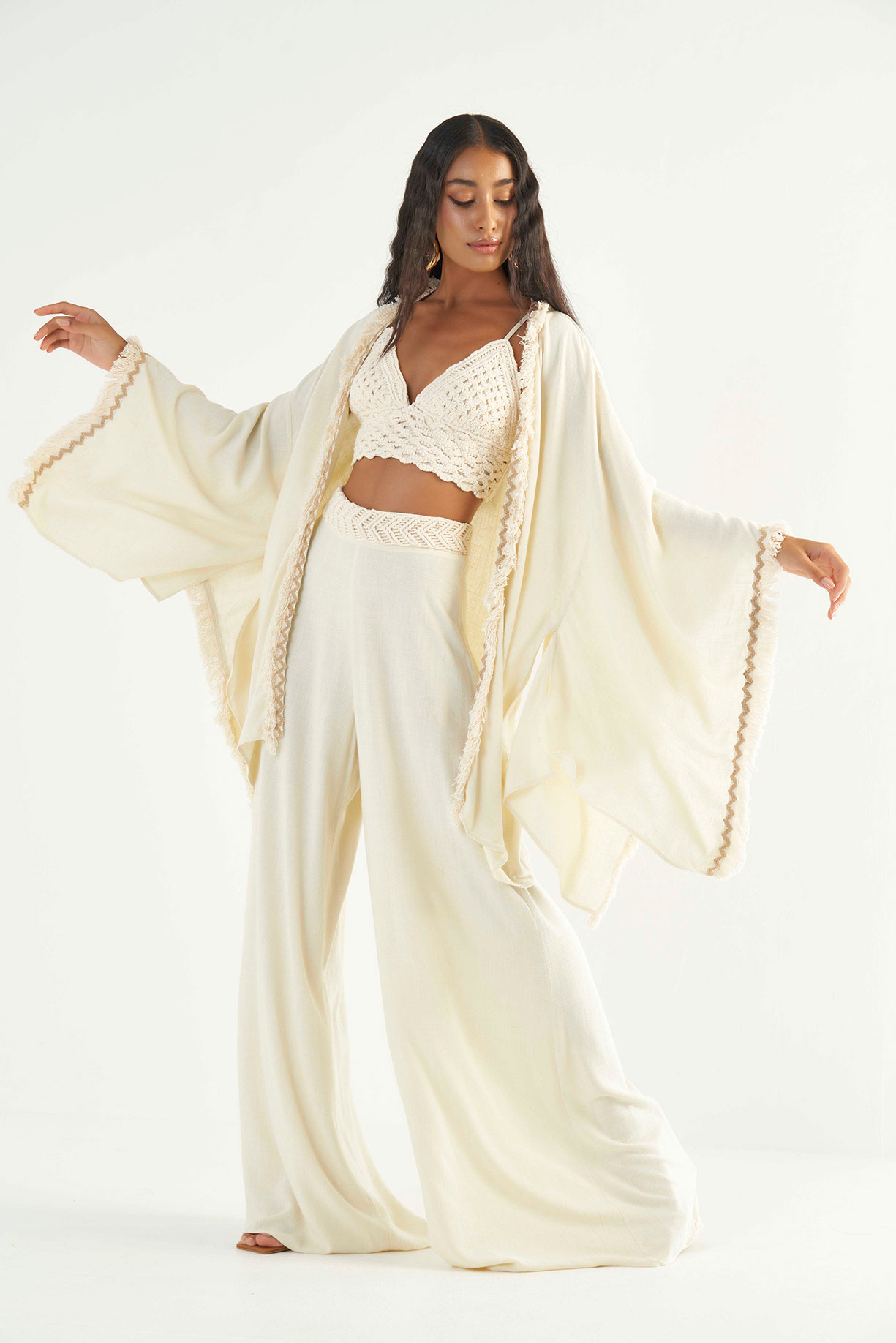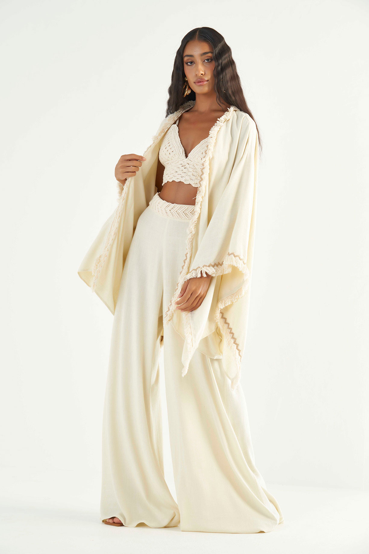 Kimono Linho Com Franjas Joana – Oásis Resortwear
