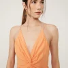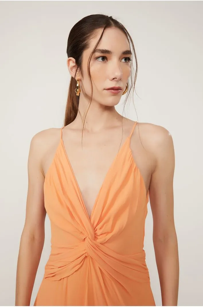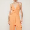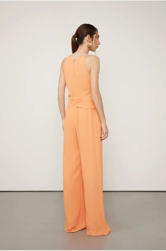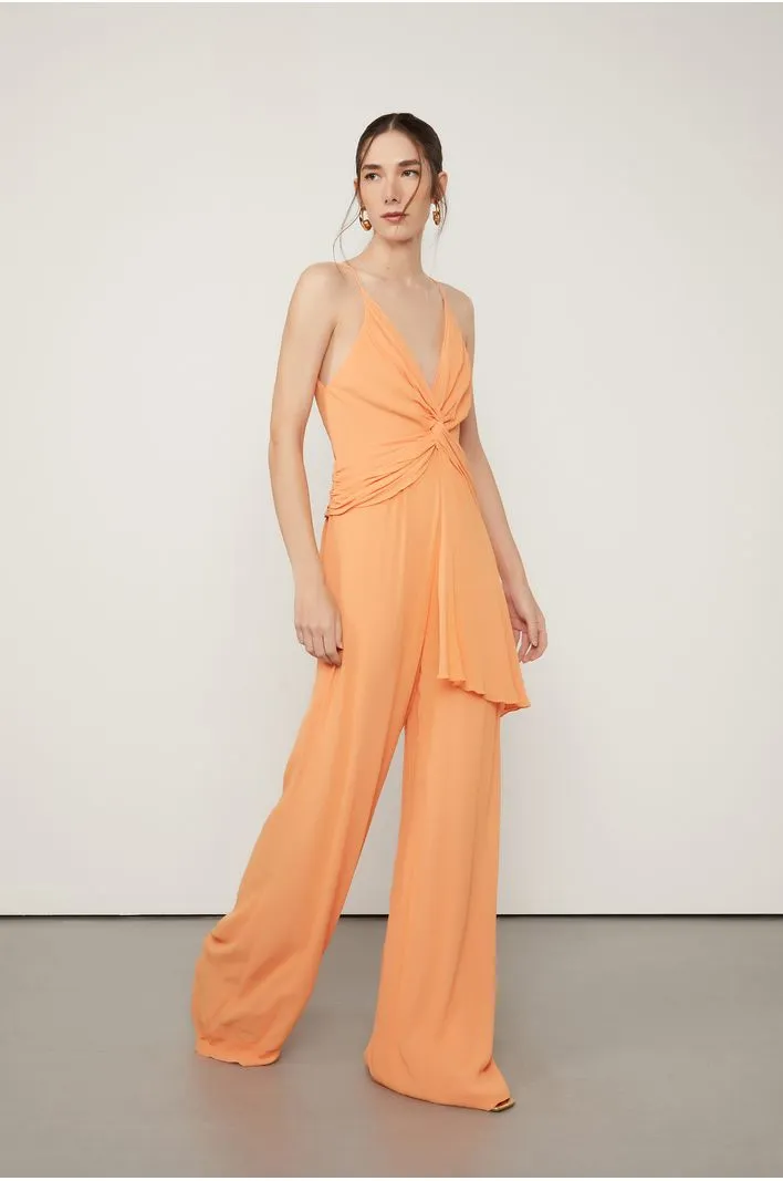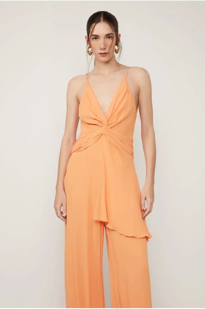 Macacão De Georgette Laranja Com Folha Sobreposta – Animale