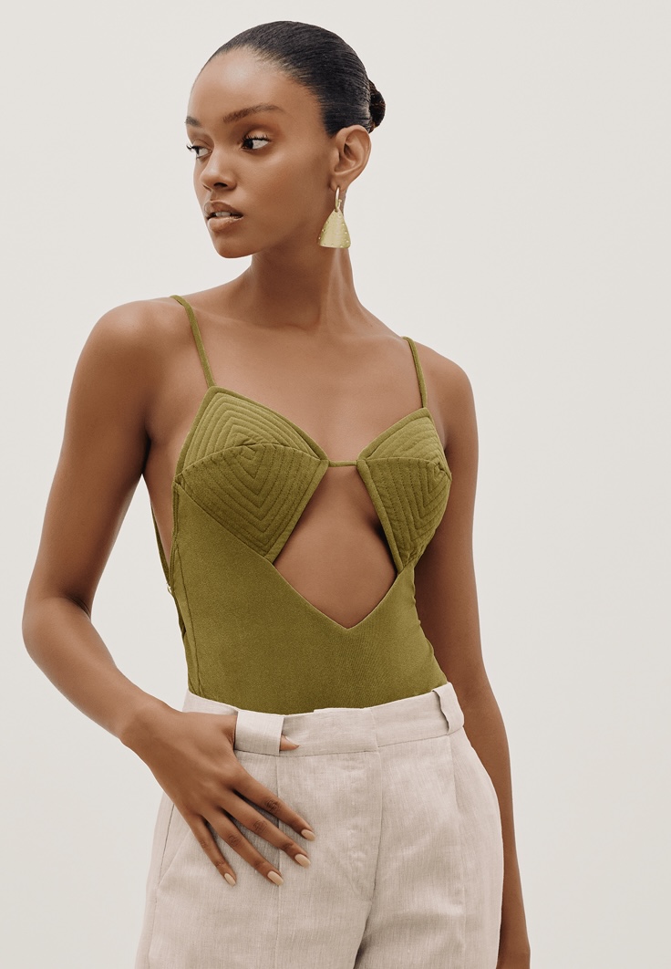 Maiô com detalhe de matelassê no busto, alças paralelas com regulador e cobertura média