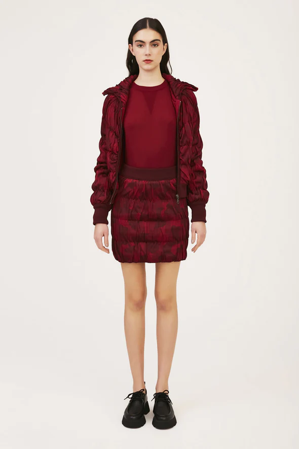Inspirada no revival dos anos 2000, as minissaias prometem ficar de vez! Repaginada, a mini saia matelassê é confeccionada em tricot, modelagem reta e padronagem exclusiva