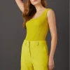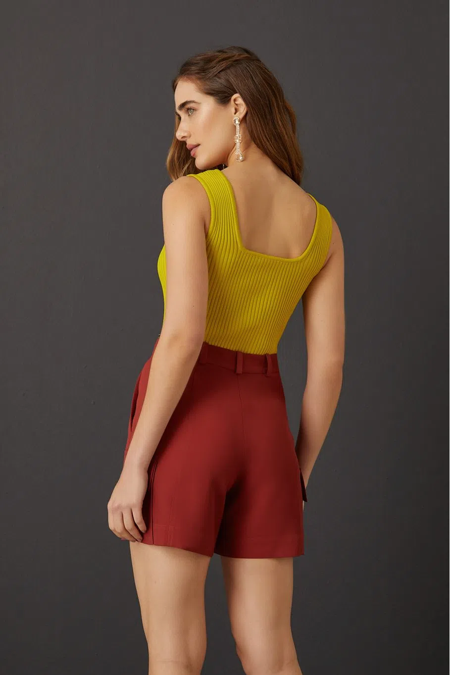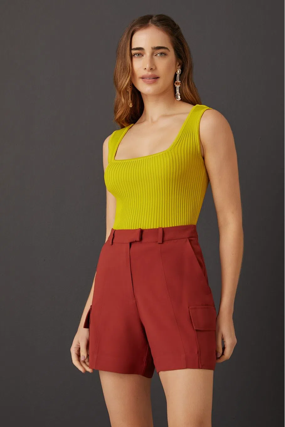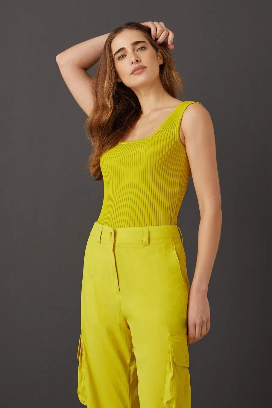 A blusa de tom lima é confeccionada em tricot. A peça comfy apresenta decote quadrado e alças largas, que proporcionam um visual fresh e atemporal. Possui caimento ajustado ao corpo, acabamento invisível e textura canelada, que traz conforto e sofisticação ao look.