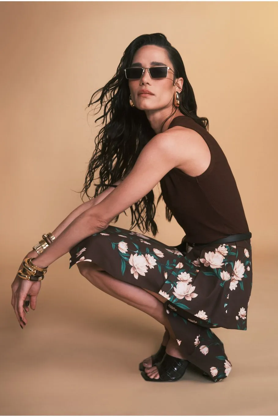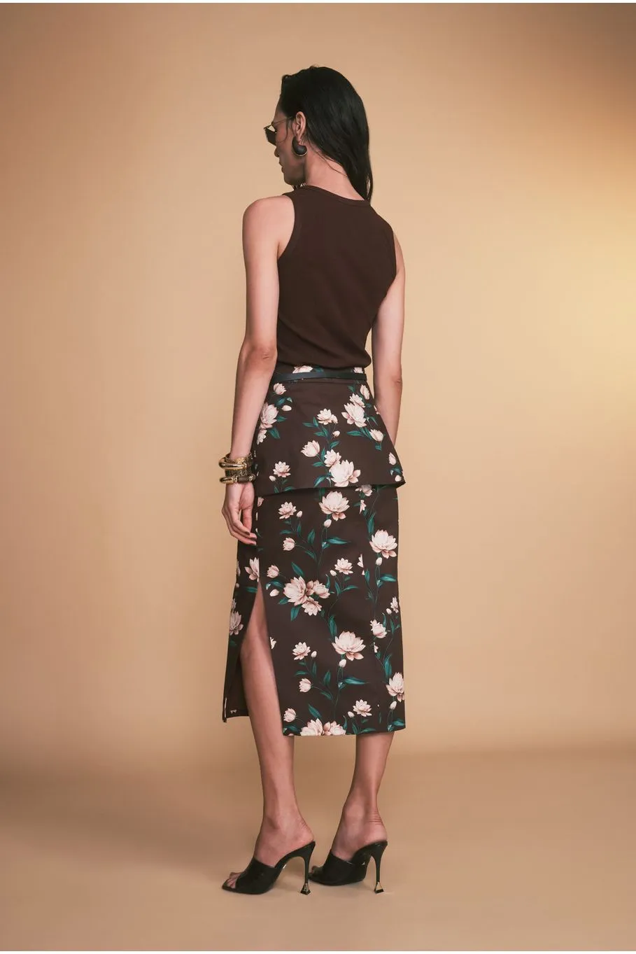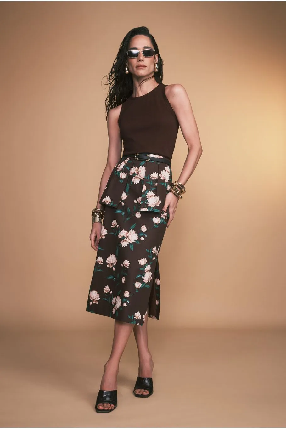 A saia Lis é confeccionada em tricoline. A peça com a nossa estampa exclusiva de peônia apresenta modelagem reta com sobreposição de saia, proporcionando um visual moderno e romântico. Possui comprimento midi, fenda lateral, zíper invisível lateral e acabamento pespontado.