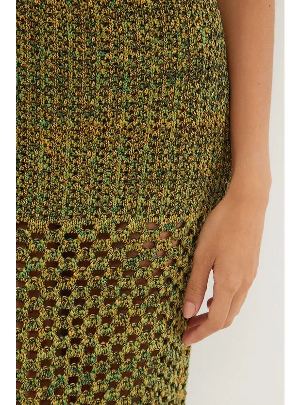 A saia de tricot verde midi Aria é a sua nova aposta para ser usada por muitos verões – Ponto fechado na altura do quadril até meio da coxa – Elástico na cintura – Contém forro – Detalhes feitos à mão no ateliê ViX