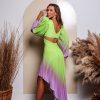 O degradê de cores em tons vívidos estampa a saia plissada, must have entre as fashionistas. Componha produções modernas e sofisticadas que elevam o look com glamour! Ideal para resorts e cruzeiros.