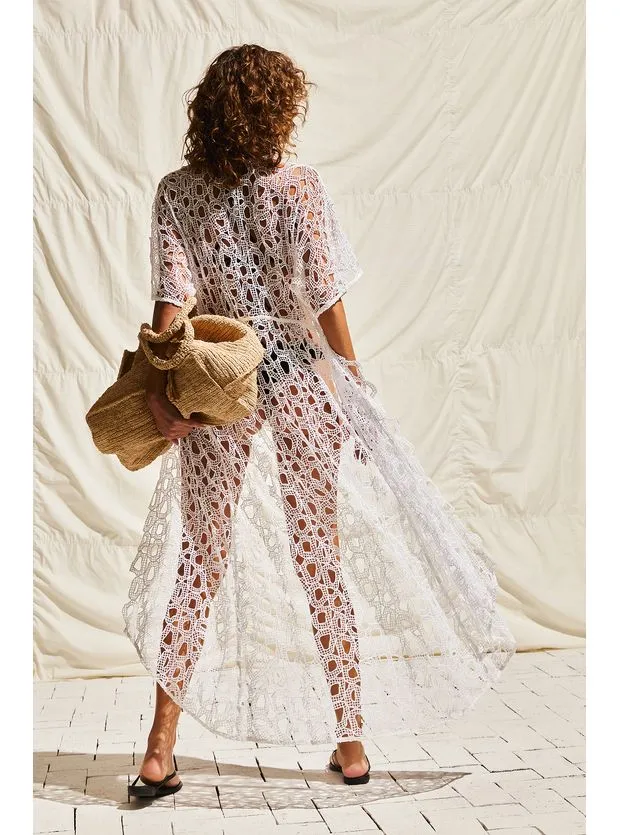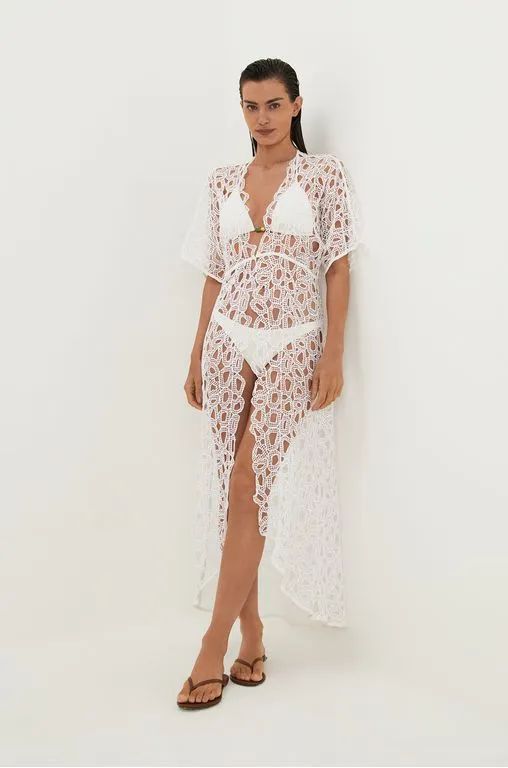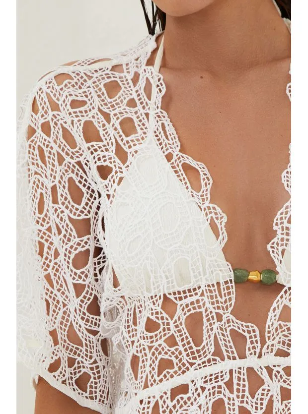 Em um jogo único de esconde e mostra, a saída de praia branca Arie é feita de laise especial 100% algodão. Combine com o seu biquíni preferido, sandálias flats, bolsa de palha, chapéu e outros acessórios ViX Paula Hermanny.